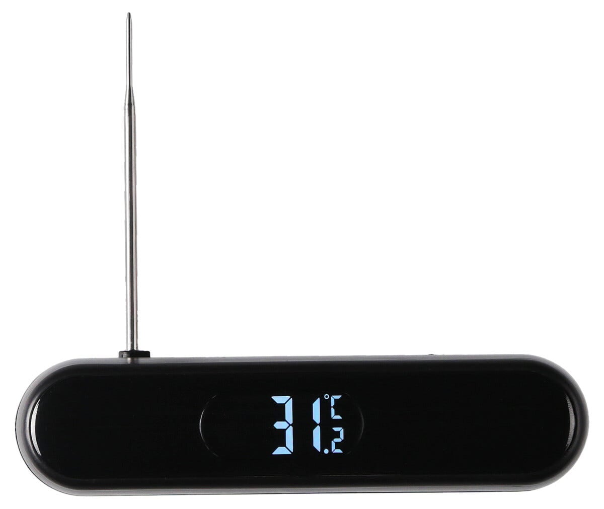 Den kompakta designen med utfällbar sensor gör den smidig att ta med och enkel att förvara. Termometern startar och stängs av automatiskt för smidig användning i köket eller vid grillen. Ett smart verktyg för dig som vill ha kontroll, precision och perfekta resultat varje gång.