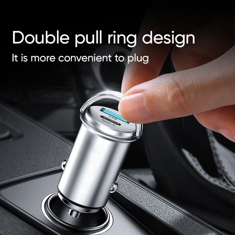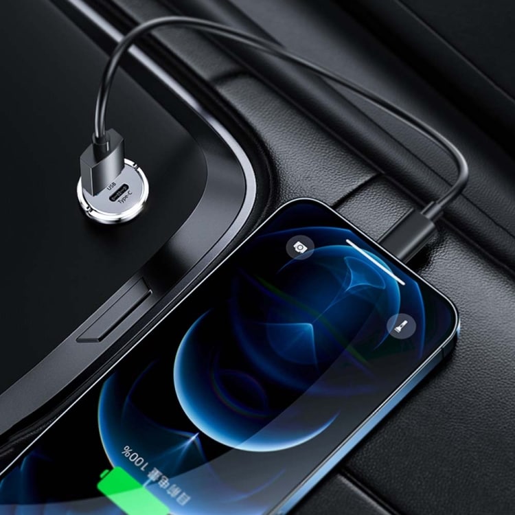 - Mini billaddare med USB-A och USB-C