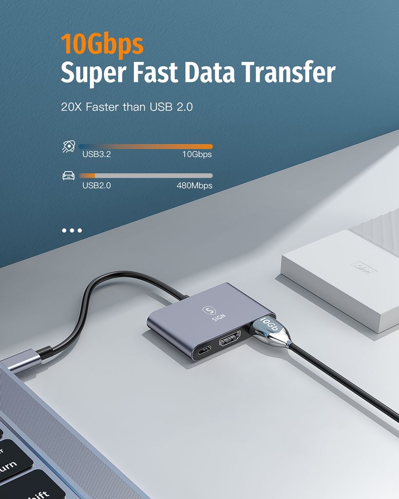 - Flera anslutningar via en kompakt USB-C hub