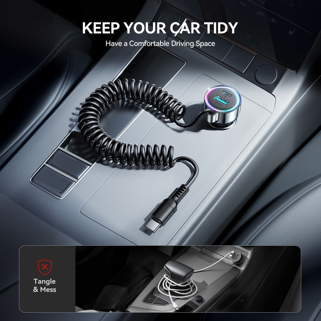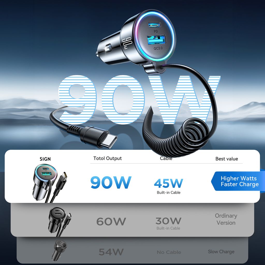 - Snabbladda dina enheter direkt i bilen med 90W effekt