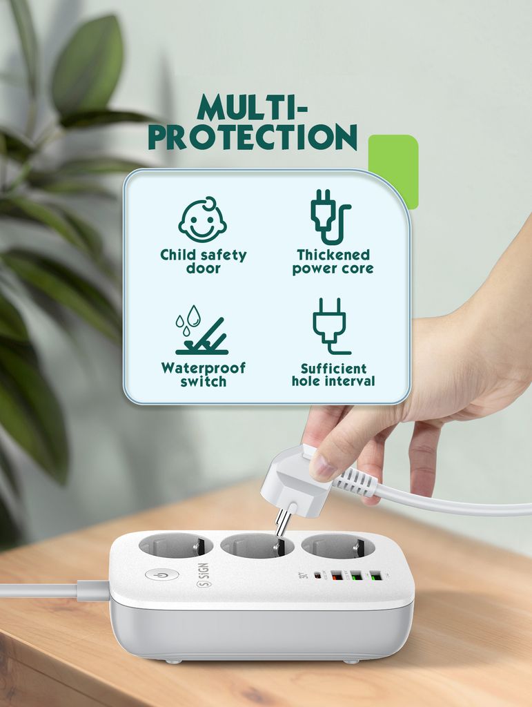 Kolla in den här smarta WiFi-grenuttaget som snabbt blir din nya bästis i hemmet. Koppla in dina prylar, luta dig tillbaka och styr allt direkt från mobilen som ett riktigt teknikproffs. Med tre eluttag och fyra USB-portar kan du ladda flera enheter samtidigt utan stress eller kabelkaos. Tänd lamporna innan du kliver in genom dörren, starta kaffet från sängen eller fixa rätt vibe i rummet med ett enda tryck. Stöd för röststyrning via Amazon Alexa och Google Assistant gör att du kan snacka med ditt hem och få det att lyda. LED-indikatorer visar tydligt vad som är igång och överladdningsskydd ger trygg användning. Schemalägg smarta rutiner, spara energi och njut av ett hem som hänger med i ditt tempo från morgon till kväll.