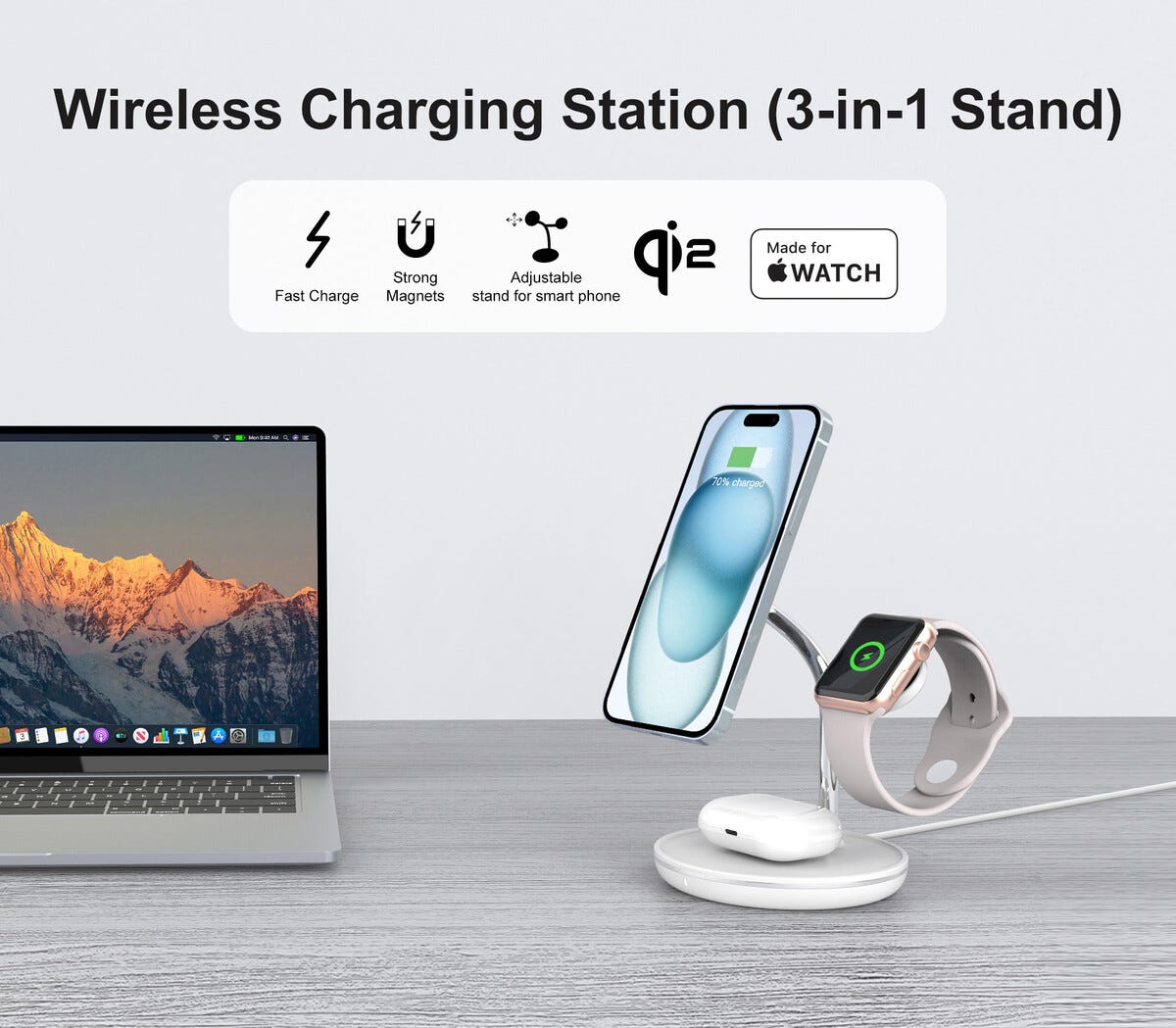 - Laddar mobil, Apple Watch och AirPods samtidigt