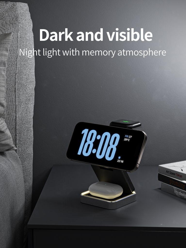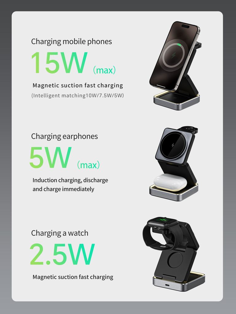 - 3-in-1 laddningsstation för mobil, Apple Watch och hörlurar