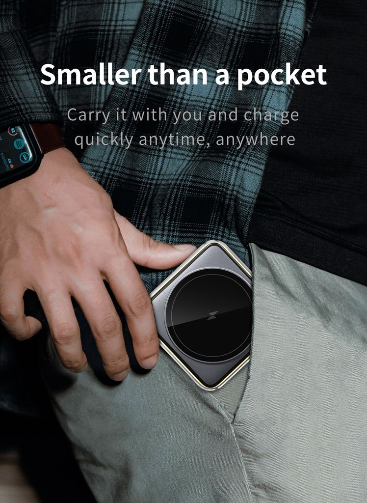 Snäpp fast mobilen magnetiskt och ladda din smartphone, Apple Watch och trådlösa hörlurar samtidigt. Med snabbladdning upp till 15W får du snabb och effektiv laddning, och du kan använda mobilen både vertikalt och horisontellt medan den laddas. Perfekt laddningsstation för hemmet, kontoret eller resan. Den är kompatibel med alla Qi-kompatibla smartphones men endast med Apple Watch smartwatches.