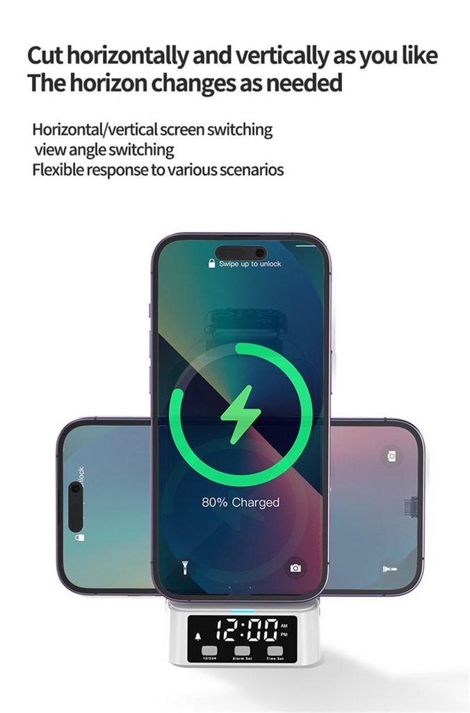 Med trådlös snabbladdning upp till 15W får din mobil snabb och effektiv laddning, och du kan placera den både vertikalt och horisontellt under laddning. Den stilrena och platsbesparande designen gör att du slipper kabeltrassel och får en snygg laddningslösning för alla dina viktigaste enheter.