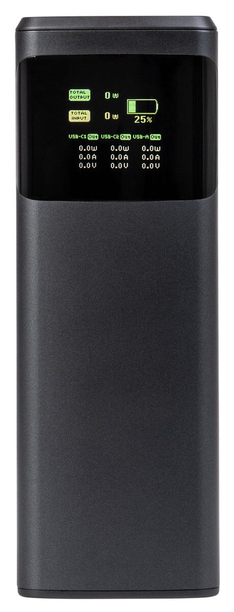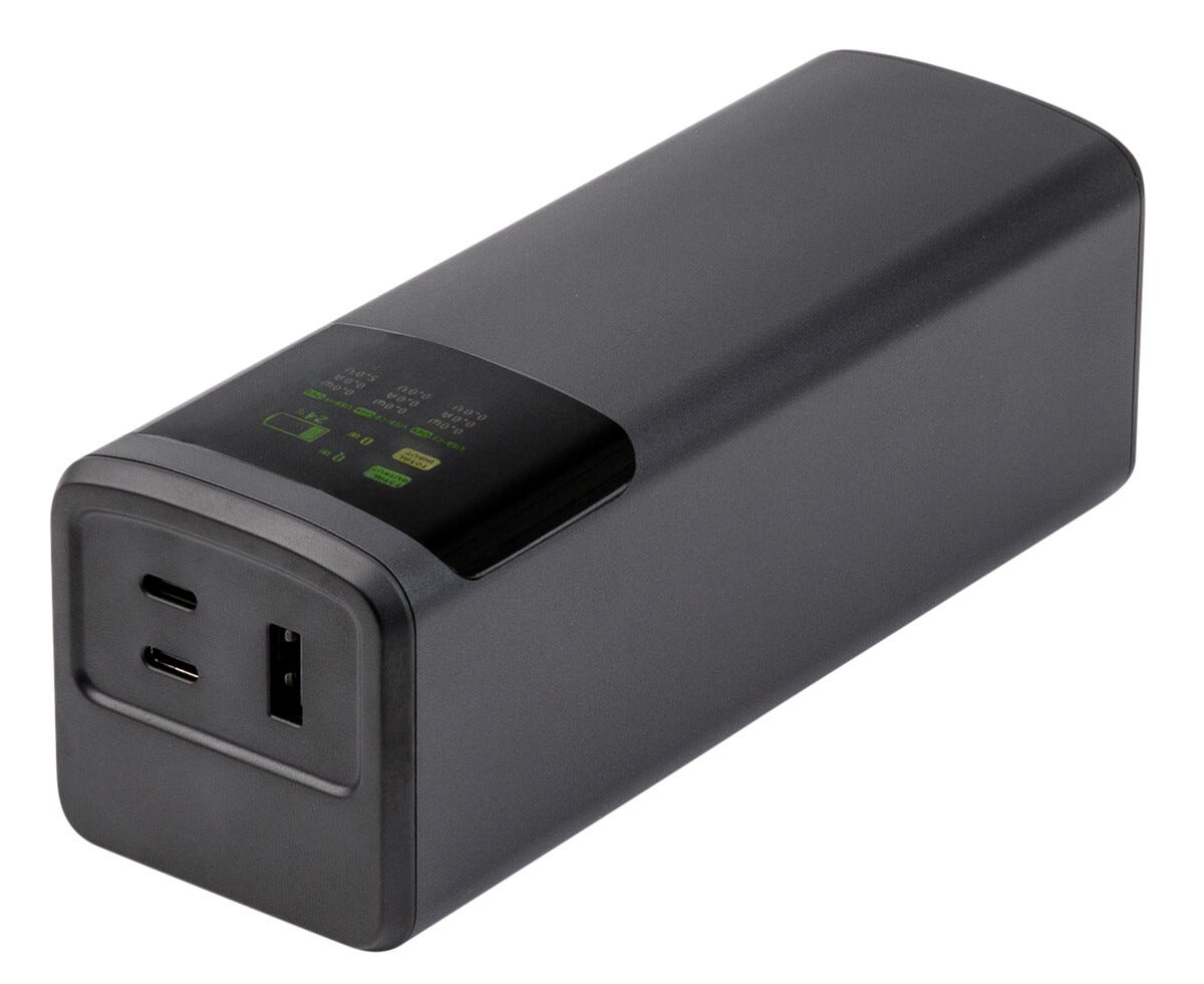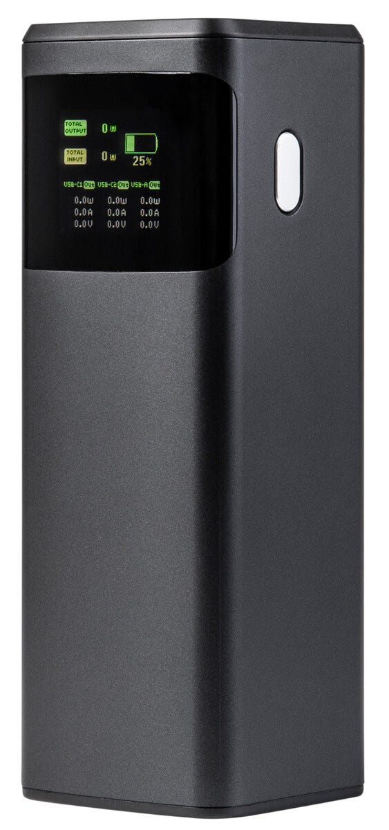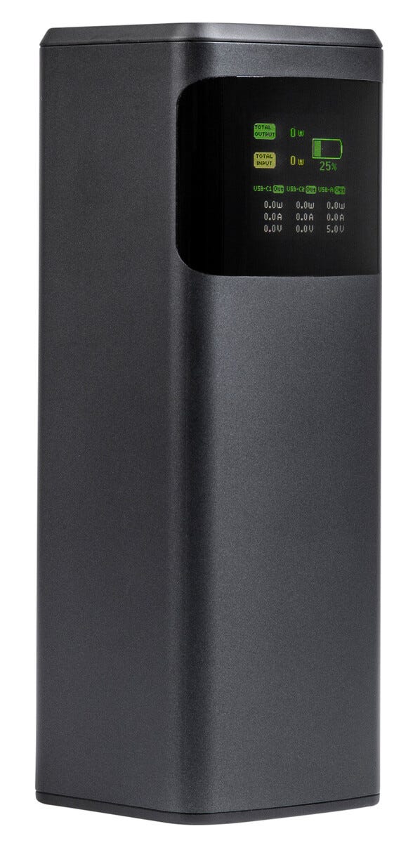 Dags att maxa din power på riktigt. Den här kraftfulla powerbanken på 24000 mAh är redo att ge dina prylar ny energi när batteriet börjar ge upp. Med två USB-C portar och snabbladdning upp till 140 W kan du ladda mobil, surfplatta och laptop i högt tempo utan att sakta ner. Perfekt att ha med i väskan på resan, jobbet eller intensiva dagar när du vill vara uppkopplad hela tiden.