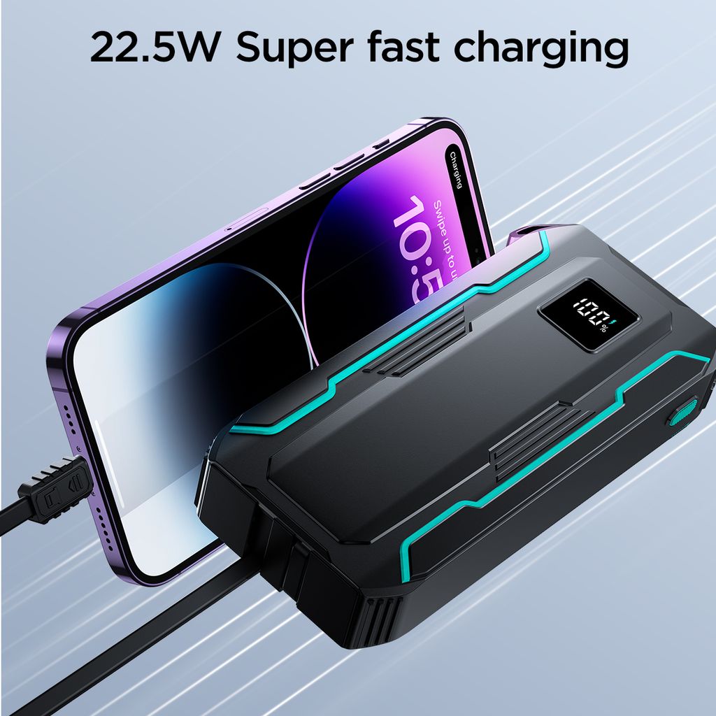 Den höga kapaciteten ger flera fulla laddningar, och med extra USB-A- och USB-C-portar kan du ladda flera enheter samtidigt. Den kompakta designen gör den enkel att ta med i fickan eller väskan, så du alltid har en pålitlig powerbank nära till hands.