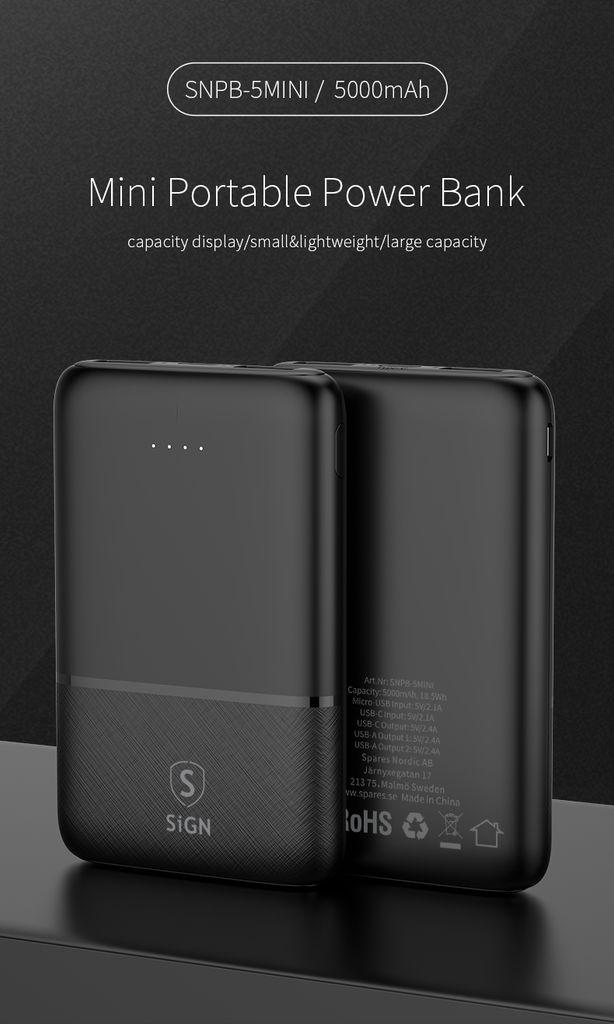 SiGN Mini Powerbank 5000mAh är din perfekta backup när batteriet börjar ta slut och du behöver extra kraft snabbt. Den kompakta och tunna designen gör att den enkelt får plats i fickan, väskan eller jackan, så du alltid kan ha den nära till hands. Med 5000mAh kapacitet kan du ladda din smartphone när det verkligen behövs och undvika att bli utan batteri under dagen.