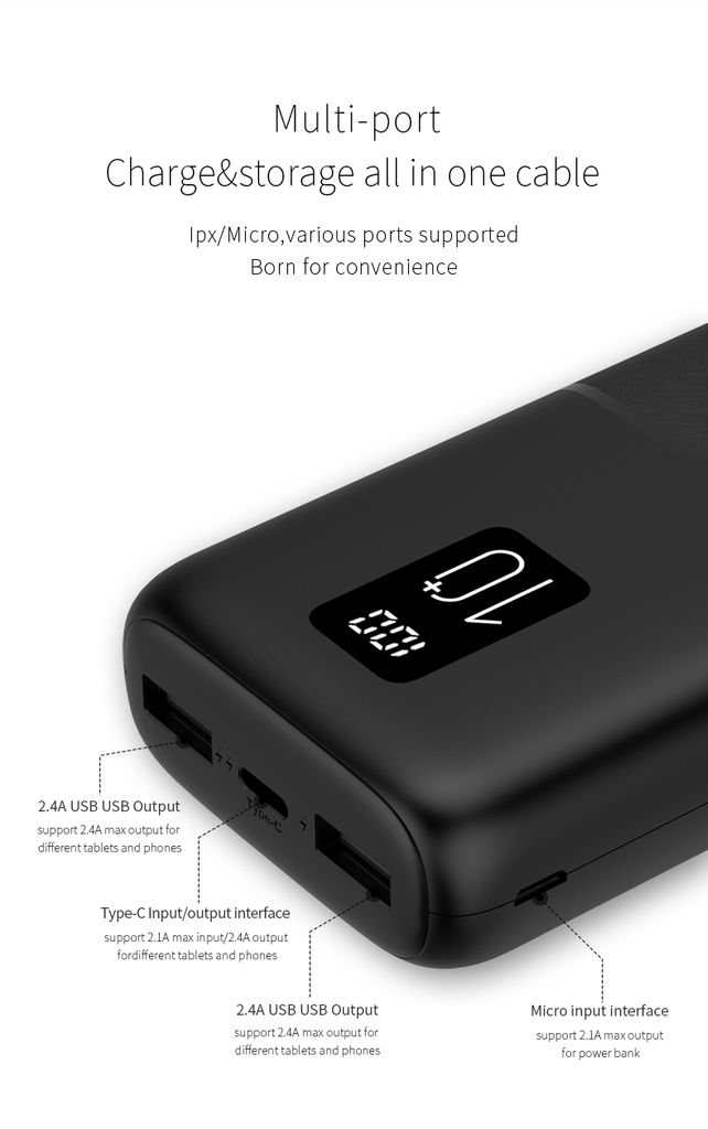 Den tydliga LED-displayen visar exakt hur mycket batteri som finns kvar, så du slipper gissa. Med två USB-A-portar och en USB-C-port kan du ladda flera enheter, och stöd för snabbladdning ger effektiv laddning när du behöver det som mest. Perfekt för vardag, resor eller långa dagar borta från ett vägguttag.