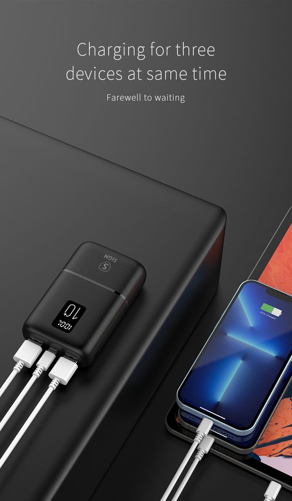 SiGN Mini Q.C Powerbank 10000mAh är den perfekta lilla räddaren när batteriet börjar ta slut och du behöver snabb extra kraft. Den kompakta storleken gör att du enkelt kan ta med den i fickan, väskan eller på resan, så du alltid har laddning nära till hands. Trots sitt lilla format levererar den hög kapacitet och passar perfekt för smartphones, surfplattor och andra USB-kompatibla enheter från tillverkare som Apple, Samsung och Huawei.