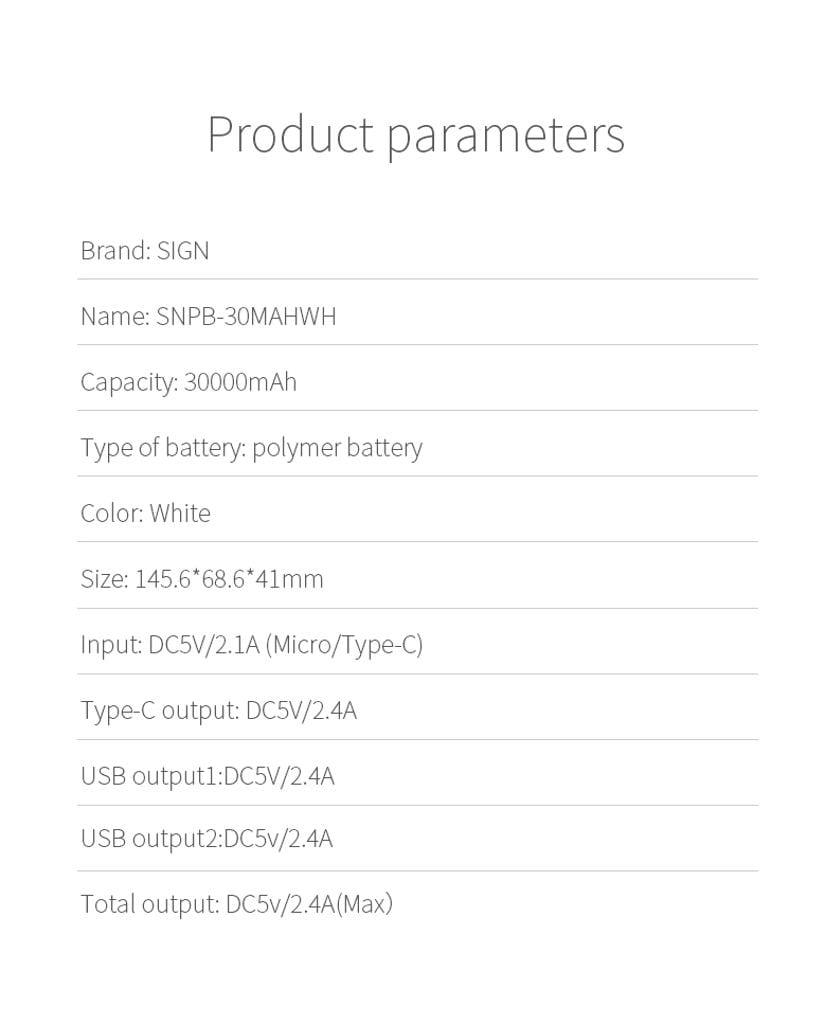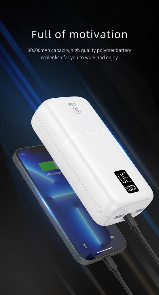 - Kraftfull kapacitet på 30 000 mAh