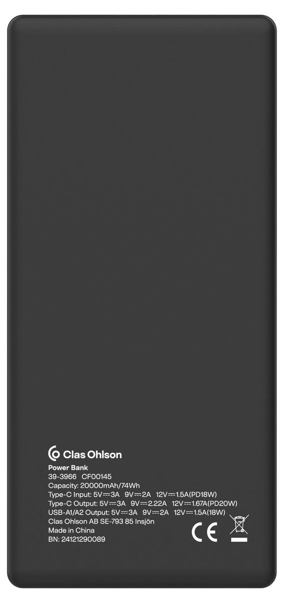 - Förpackningen innehåller: Powerbank och USB-A till USB-C kabel