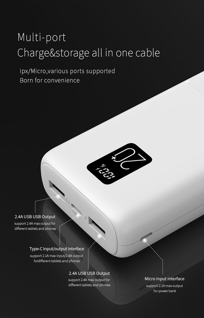 Utrustad med en USB-C-port och två USB-A-portar kan du ladda upp till tre enheter samtidigt. Snabbladdning och smarta säkerhetsskydd ser till att laddningen går snabbt, stabilt och säkert. LED-indikatorerna visar tydligt hur mycket kräm du har kvar.