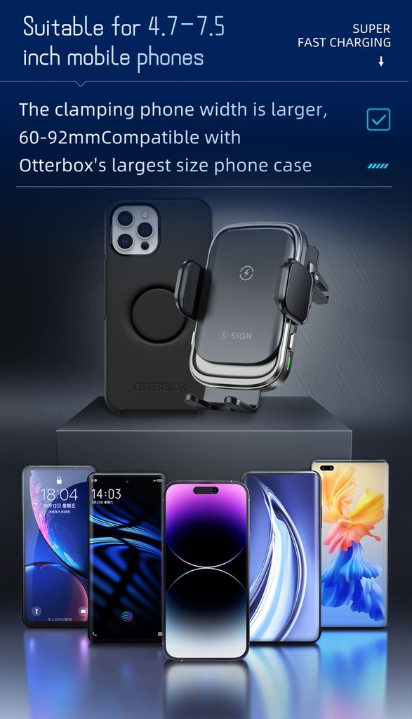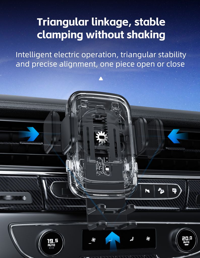 - Mobilhållare för bil med trådlös Qi-laddning