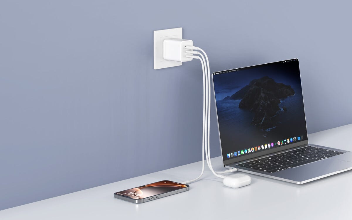 Med två USB-C portar och en USB-A port kan du enkelt ladda flera enheter samtidigt och hålla tempot uppe hela dagen. Laddaren anpassar automatiskt effekten efter anslutna enheter vilket ger en trygg och stabil laddningsupplevelse. Perfekt som allt i ett lösning för dig som vill ha en enda laddare till hela din teknikvardag.