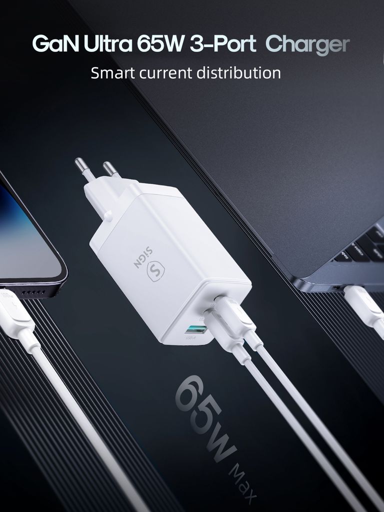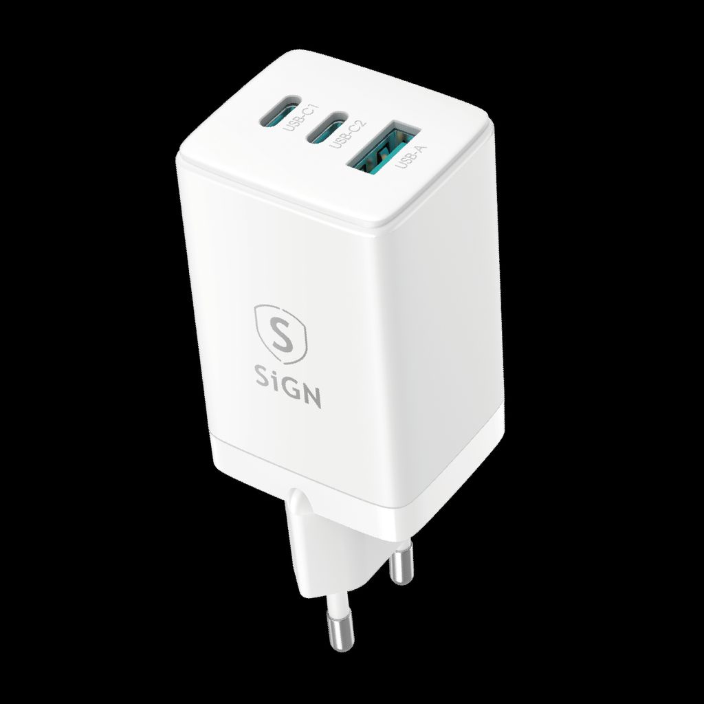 En laddare som hänger med i ditt tempo. SiGN GaN 65W snabbladdare ger dig seriös kraft i ett litet format och låter dig ladda laptop, mobil och surfplatta samtidigt. Med två USB-C-portar och en USB-A-port slipper du välja vad som ska få ström först.