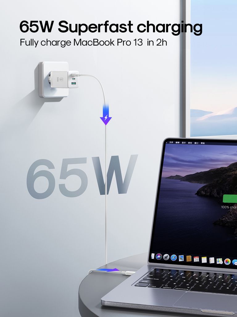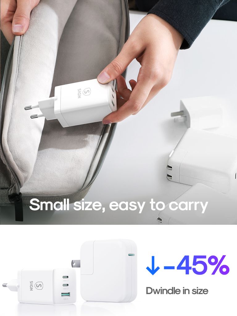 Den moderna GaN-tekniken gör laddaren både effektiv och sval, samtidigt som den levererar blixtsnabb laddning. Perfekt för skrivbordet, resväskan eller nattduksbordet när du vill ha snabb, smidig och pålitlig laddning varje dag.