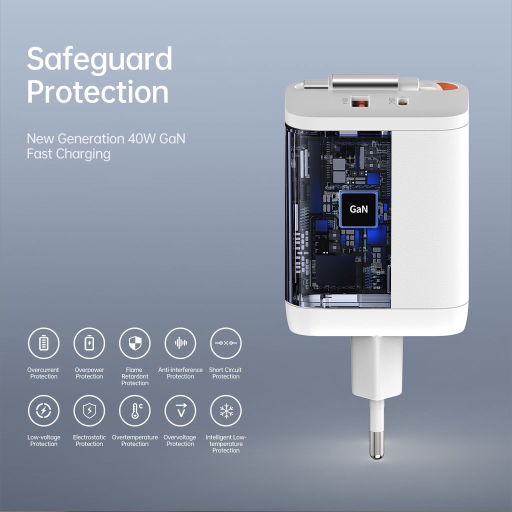 Den smarta laddningsteknologin anpassar automatiskt effekten för att ge säker och stabil laddning varje gång. Den utdragbara kabeln på 65 cm ger flexibilitet och gör laddaren enkel att använda både hemma, på jobbet eller under resan. Den kompakta designen gör den lätt att ta med, så du alltid har tillgång till snabb laddning när du behöver det.