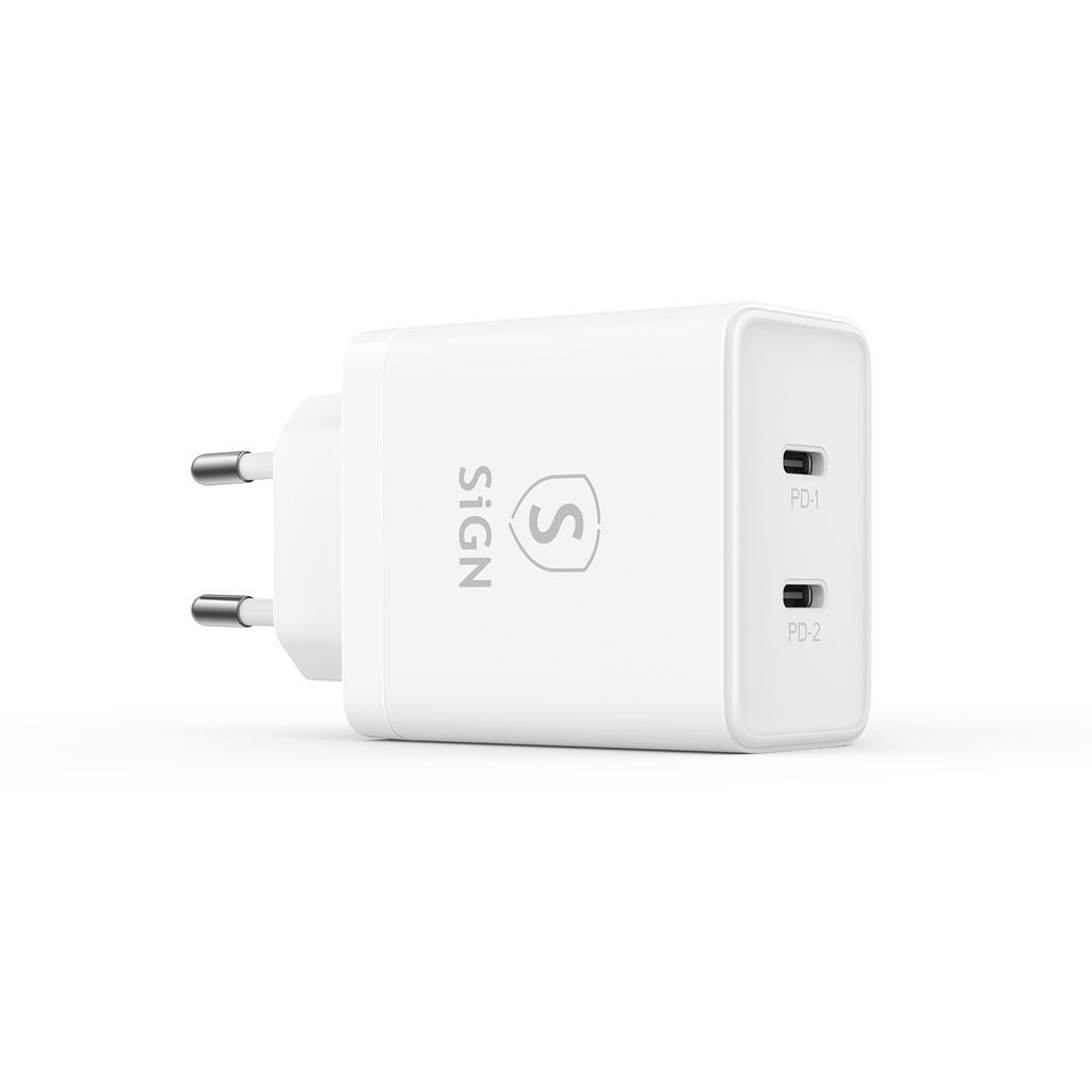 Ladda snabbare och smartare med SiGN Dual USB-C PD Laddare 40W. Med två USB-C-portar och kraftfull snabbladdning kan du enkelt ladda mobilen, surfplattan, hörlurarna och andra prylar samtidigt - perfekt hemma, på jobbet eller på resan.