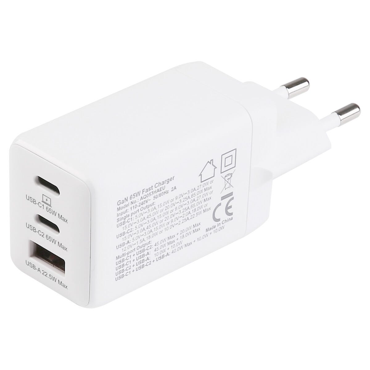 - Dubbelutgång: USB-C1 + USB-A: 45 W + 18 W