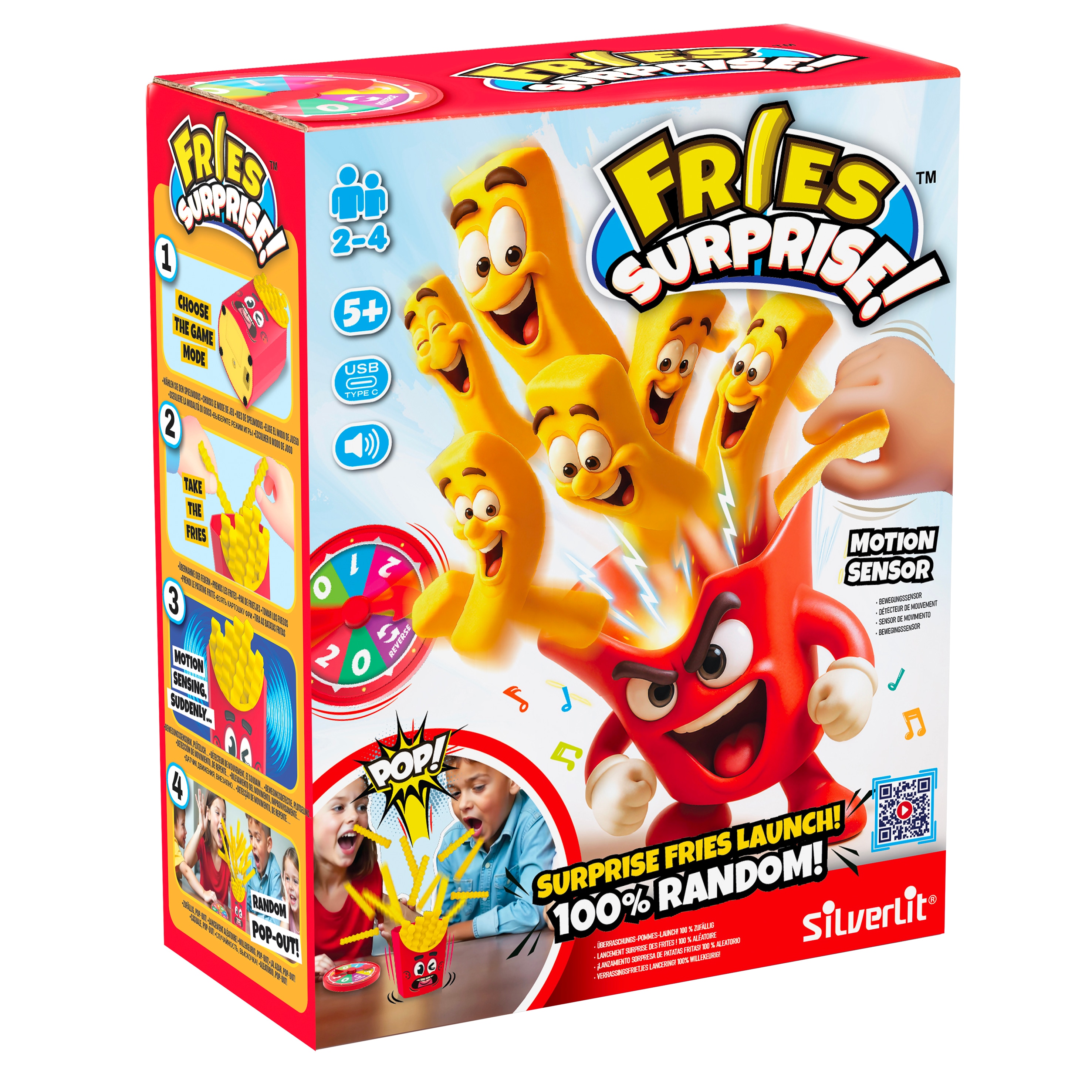 Fries Surprise är det fartfyllda och oförutsägbara spelet där allt kan hända! Turas om att snurra hjulet och plocka pommes - men se upp, vilken som helst kan utlösa en FRIES-PLOSION! Varje runda är helt slumpmässig och lika spännande varje gång. Med Timer Mode kan överraskningen komma utan förvarning och höja pulsen ytterligare.