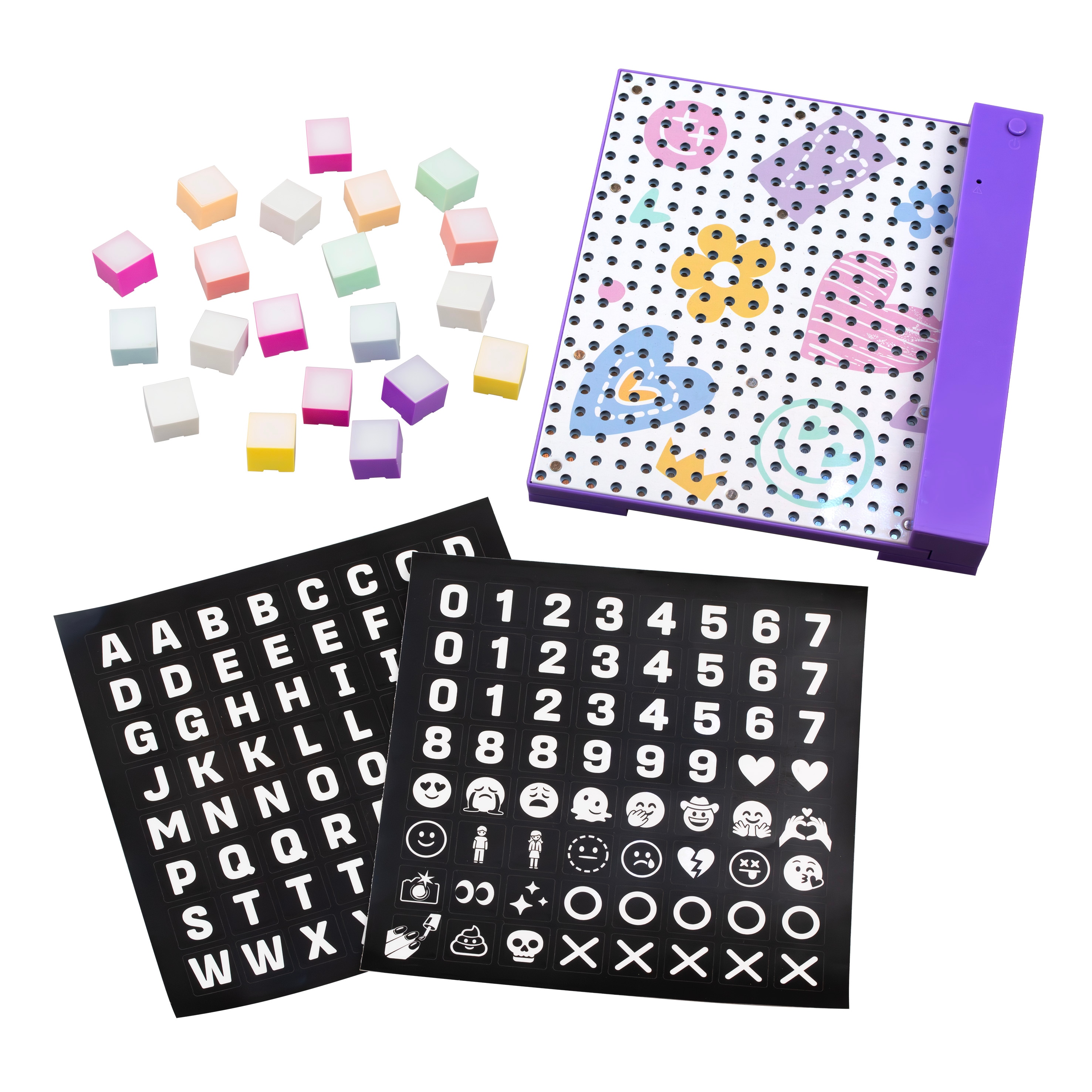Skapa lysande budskap med LumiMags! Denna magnetiska bricka låter barn uttrycka sig med ljus, färg och form. Snäpp fast de 20 färgglada LED-klossarna och bygg personliga meddelanden, mönster eller roliga emojis om och om igen.