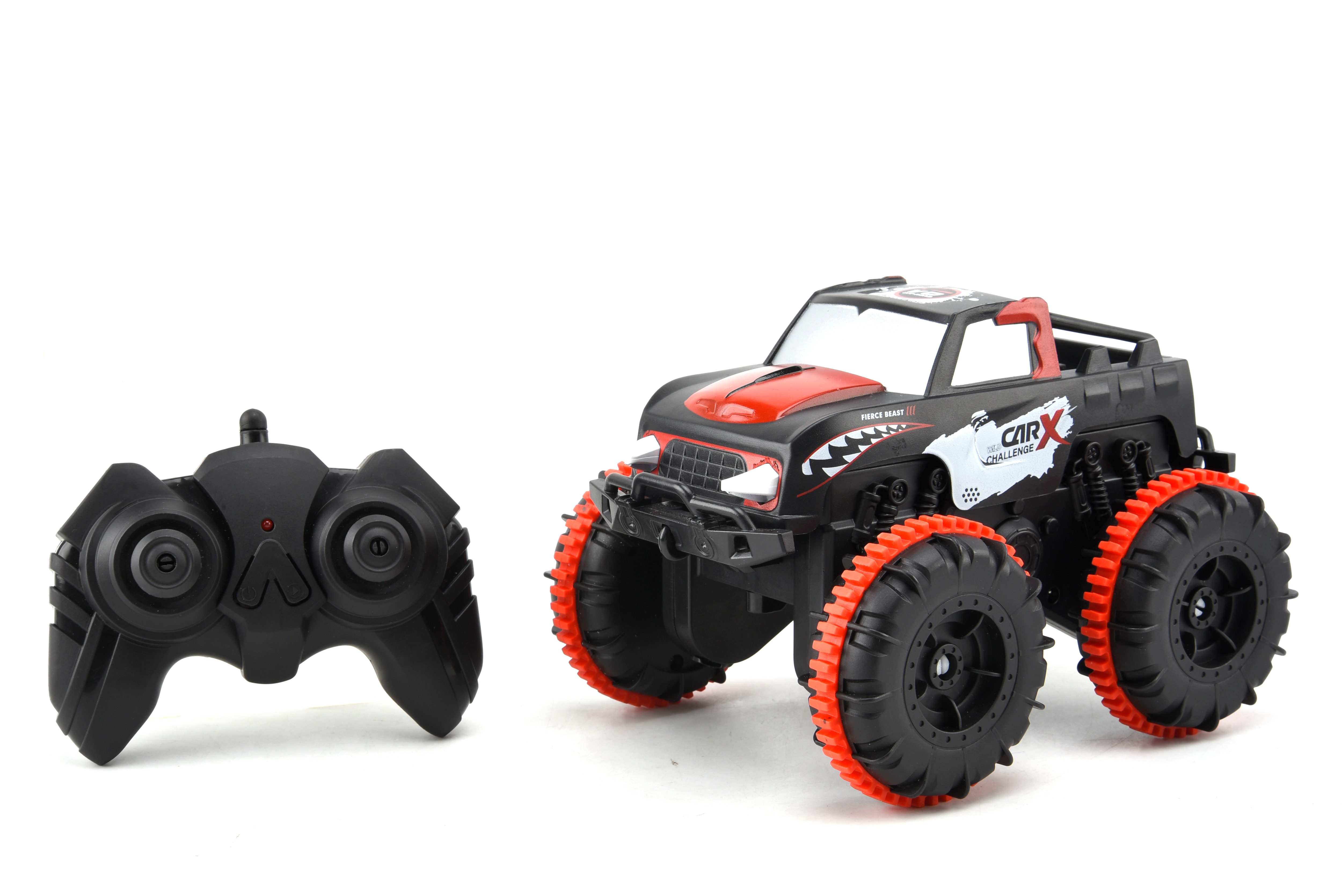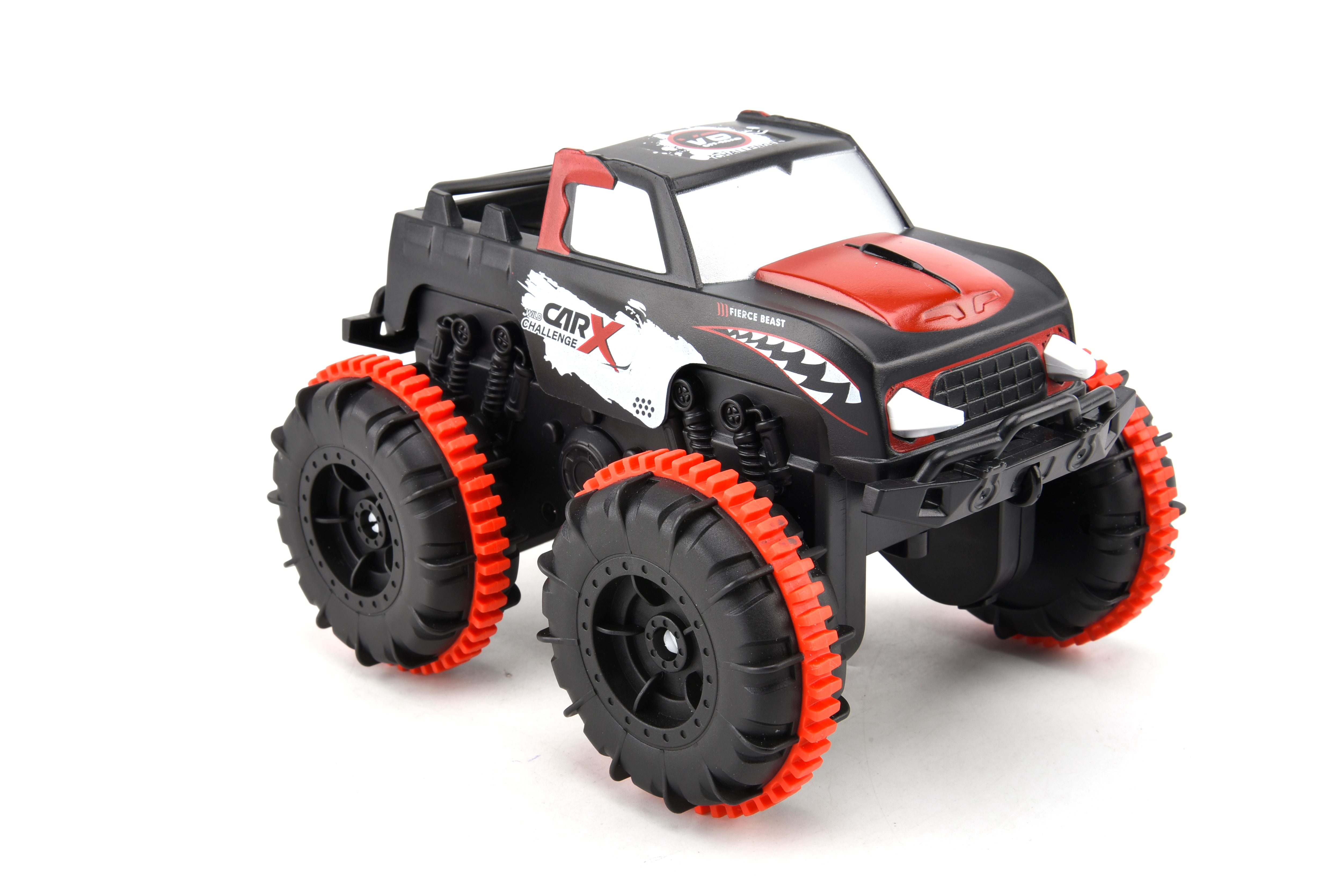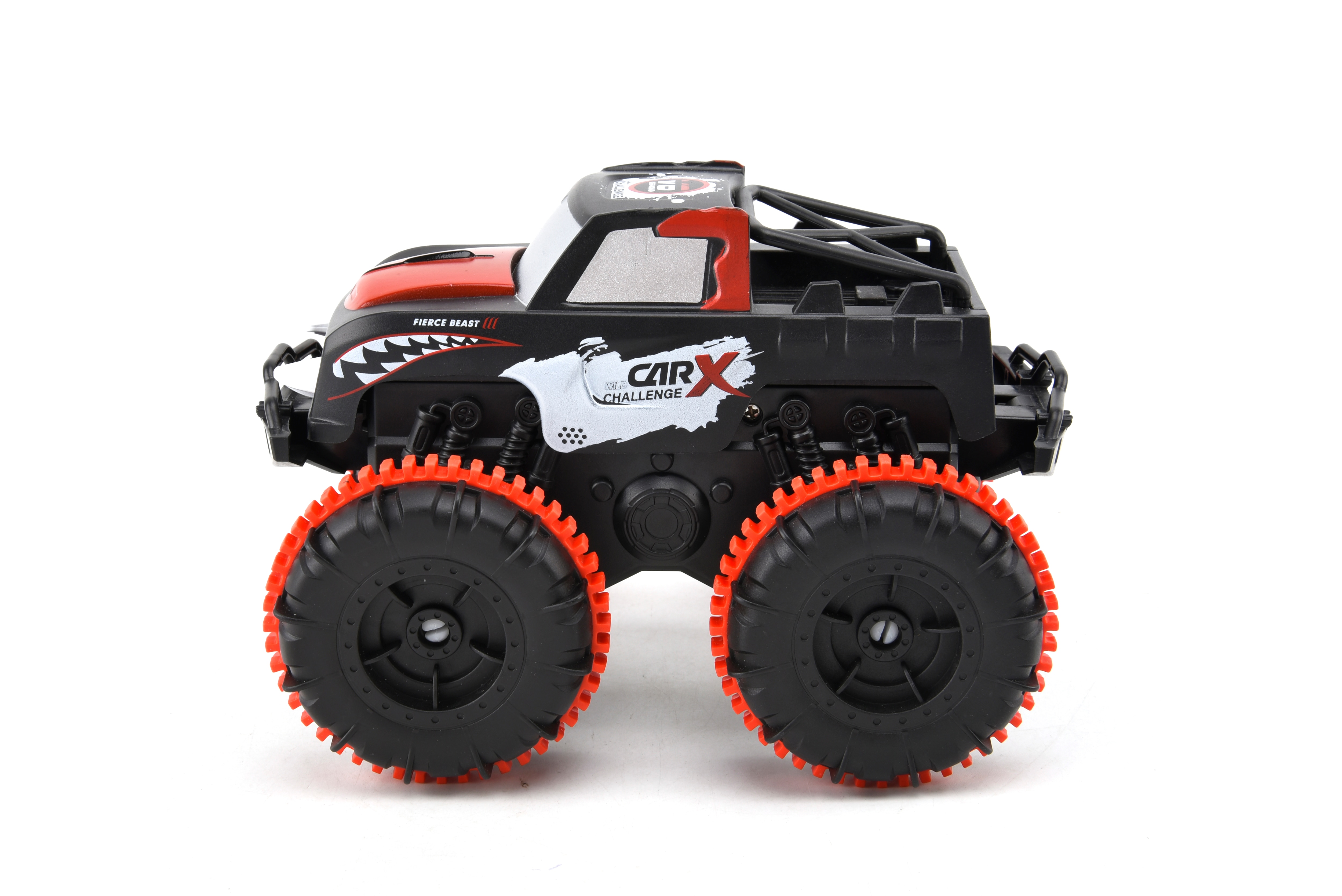 De grovt mönstrade däcken ger bra grepp och stabil framfart även på ojämnt underlag. Med 2,4 GHz-frekvens kan flera radiostyrda bilar köras samtidigt utan störningar, vilket gör den perfekt för race med kompisar. Bilen når hastigheter upp till cirka 6 km/h och är enkel att styra, även för yngre förare. Rekommenderad ålder är från 6 år.