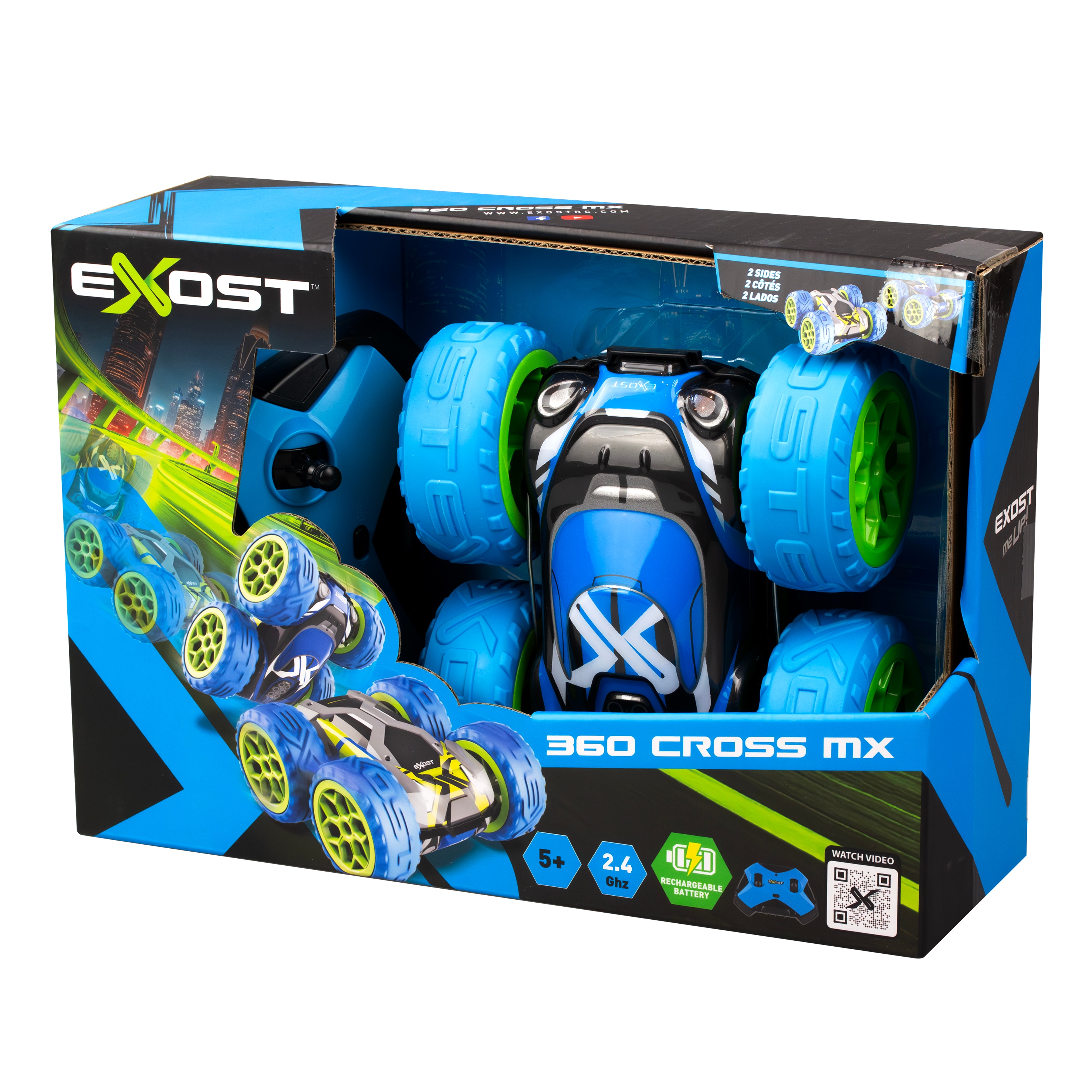 360 Cross MX är en superrolig radiostyrd stuntbil som älskar action. Den kör på båda sidor, klarar häftiga 360°-snurrar och fortsätter köra även när den landar upp och ner. Perfekt för fartfyllda race, trick och lek utan avbrott.