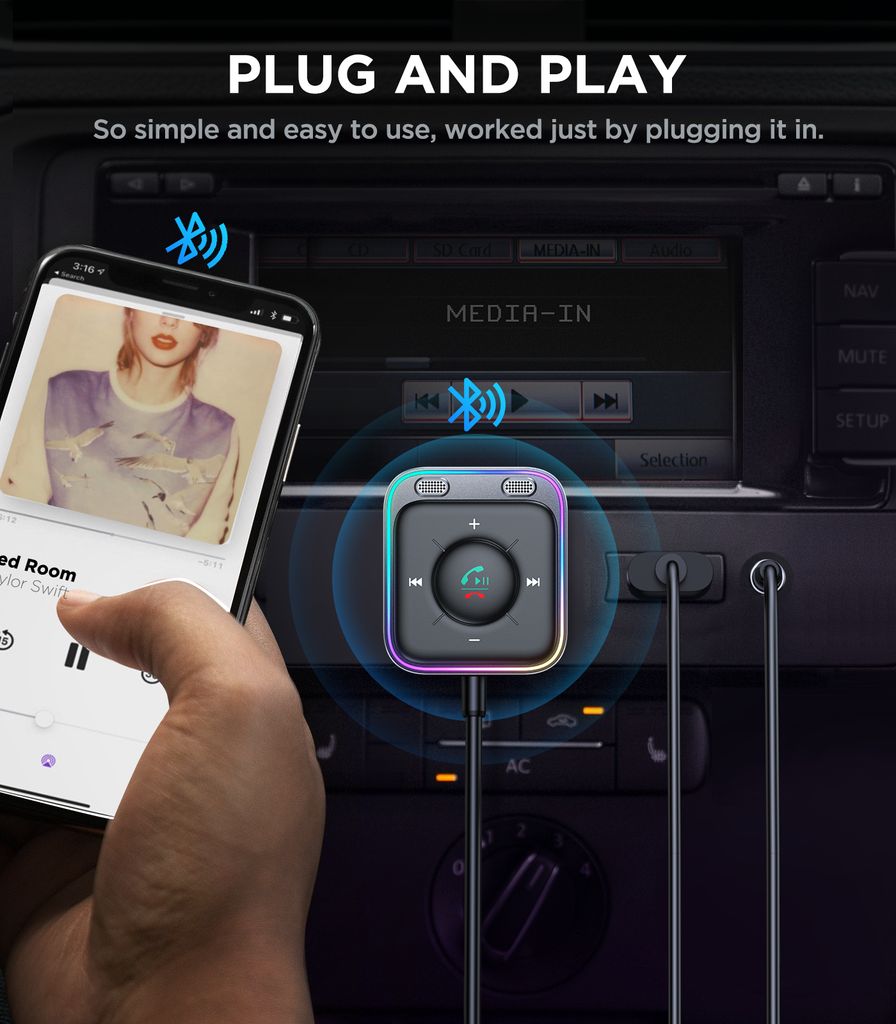 Vill du spela musik i bilen på ett enklare sätt? SiGN Bluetooth audio adapter gör det smidigt att koppla mobilen till bilens ljudsystem och få igång både musik och samtal utan krångel. Anslut adaptern via USB och AUX, koppla upp mobilen och kör igång direkt. Med Bluetooth 5.3 får du stabil anslutning och klart ljud oavsett om du lyssnar på favoritlåtar eller tar samtal. Perfekt när du vill ha bättre ljud i bilen och samtidigt kunna prata handsfree utan att släppa fokus från vägen. En enkel lösning som gör varje bilresa lite smidigare.