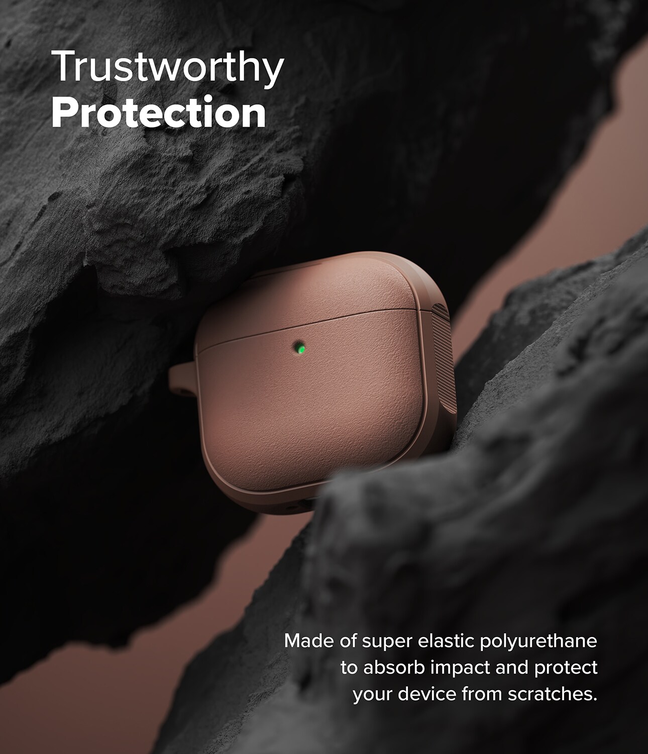 Ge din Apple AirPods 4 lite extra stil med det här tuffa skalet från Ringke! Utrustat med MagSafe och en karbinhake är det här skalet redo att hänga med på alla äventyr. Det har en snygg design och skyddar din enhet som en riktig hjälte. Den flexibla och slitstarka TPU med sin matta, granulära yta känns skön att hålla i och håller borta både fingeravtryck och halkiga situationer.
