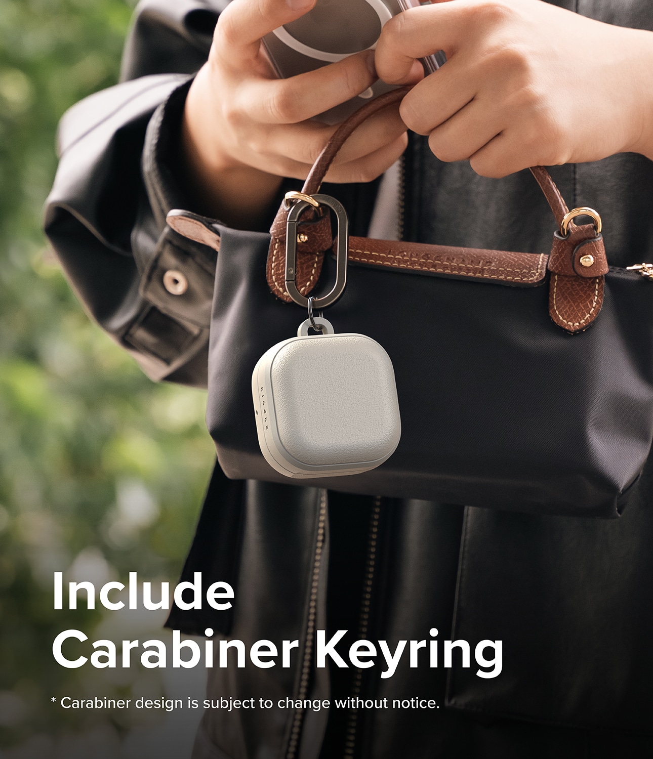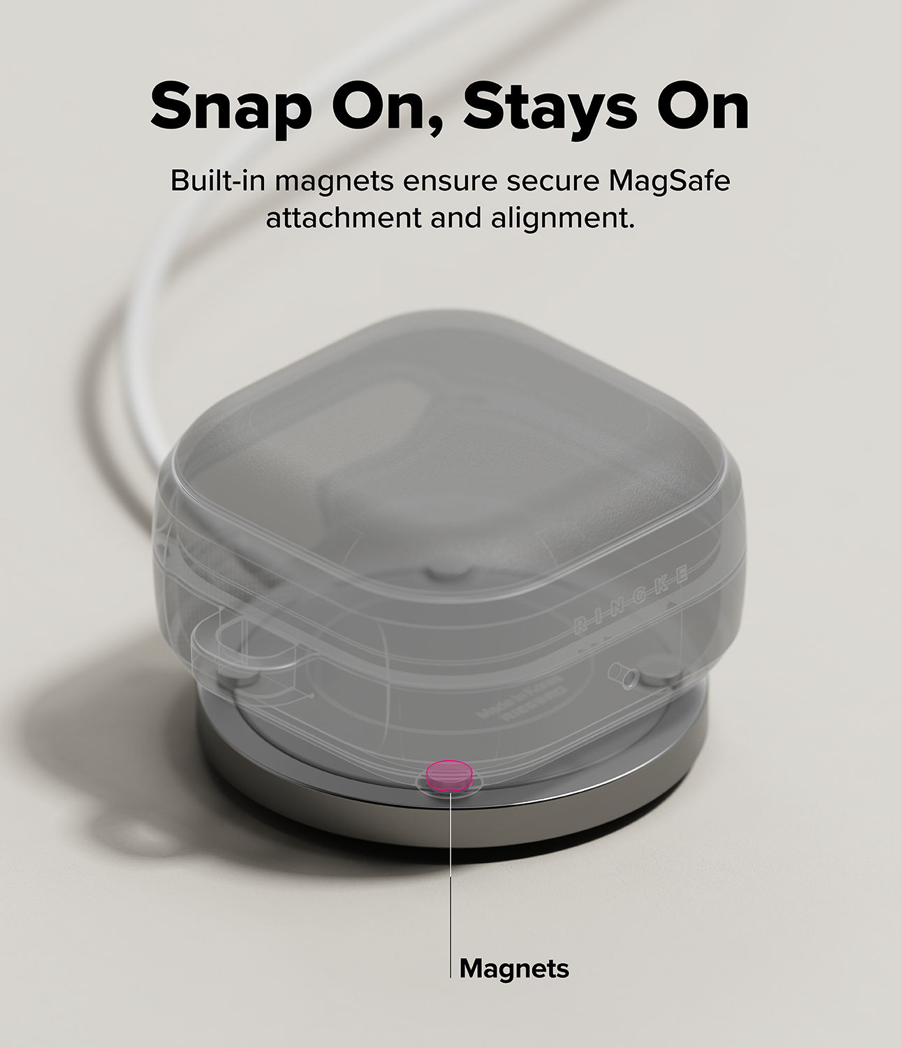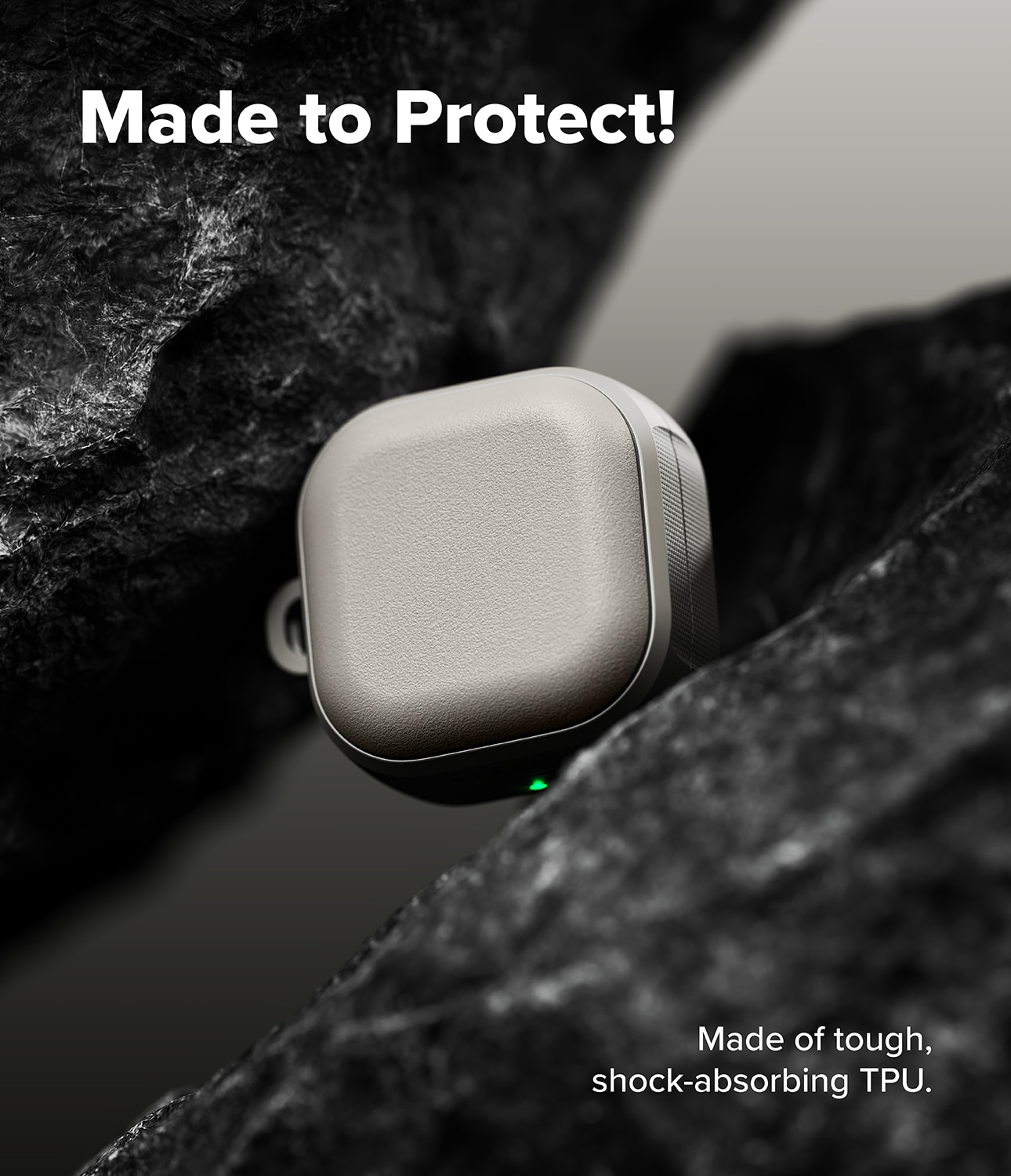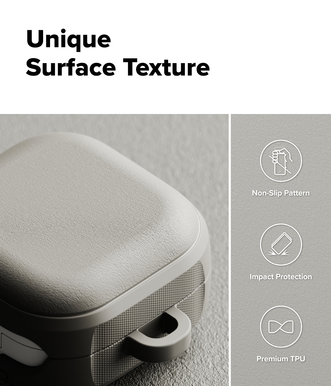Ge din Samsung Galaxy Buds 4 lite extra stil med det här tuffa skalet från Ringke! Utrustat med MagSafe och en karbinhake är det här skalet redo att hänga med på alla äventyr. Det har en snygg design och skyddar din enhet som en riktig hjälte. Den flexibla och slitstarka TPU med sin matta, granulära yta känns skön att hålla i och håller borta både fingeravtryck och halkiga situationer.
