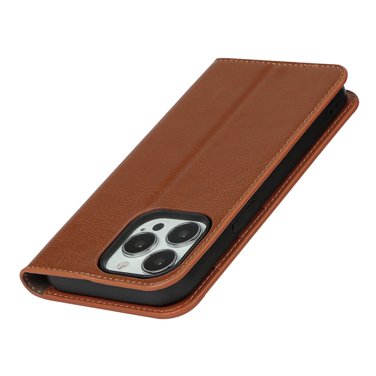 Gör din Apple iPhone 13 Pro ännu snyggare med ett praktiskt mobilfodral i äkta läder! Det är slimmat men otroligt smart, med plats för tre kort och en sedel eller två, så du kan lämna plånboken hemma. Din telefon klickar du enkelt i det flexibla, inbuggda skalet som håller den stadigt på plats.