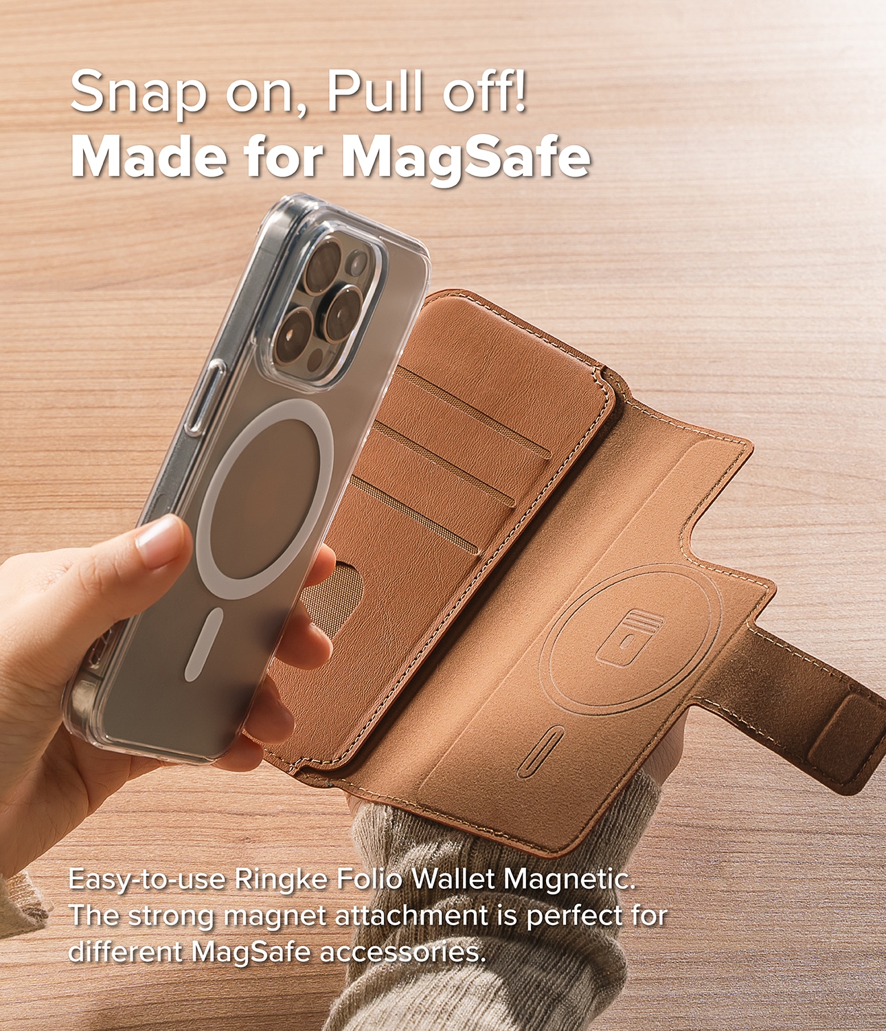 - Magnetisk plånbok som fästs enkelt på ditt MagSafe-skal