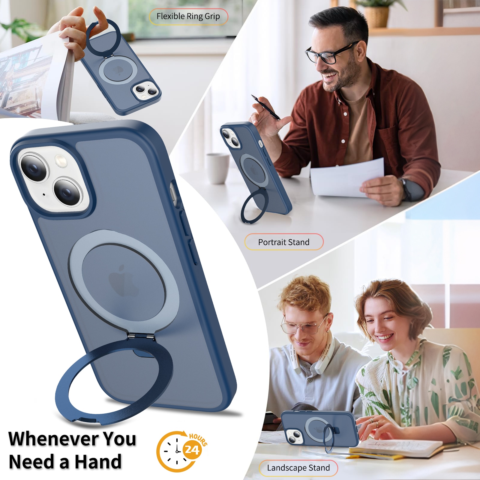 - Magnetringen fälls ut för att fungera som ett praktiskt mobilställ