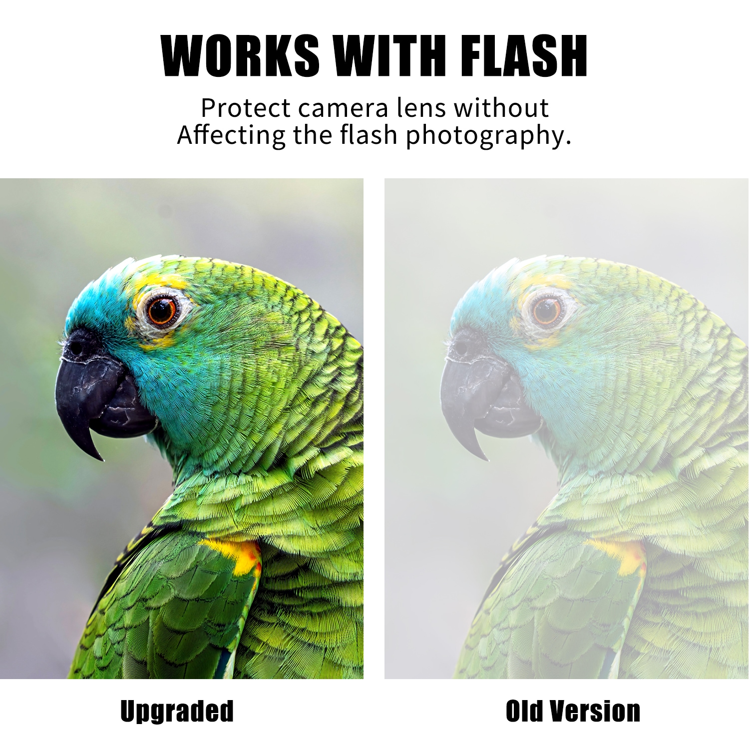 Glaset är utrustat med AR-beläggning (antireflection) som minskar blänk och ser till att ljuset släpps igenom på bästa sätt – så att dina bilder och videor fortsätter se grymma ut. Den smarta anti-fingeravtrycksytan håller dessutom fett och smuts borta, vilket gör rengöringen snabb och enkel.