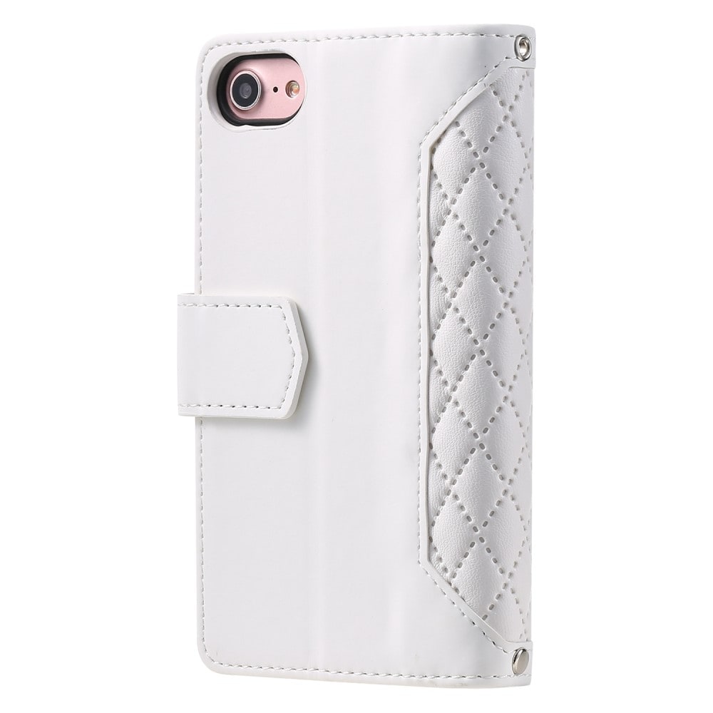 Ge din Apple iPhone 7 en lyxig makeover med detta multifunktionella mobilfodral som kombinerar elegans och funktionalitet i ett. Klädd i tjusigt quiltat konstläder med ett inbyggt skal av stötdämpande TPU, får din telefon både stil och skydd. Det här fodralet är så praktiskt att det kan ersätta din plånbok helt och hållet!