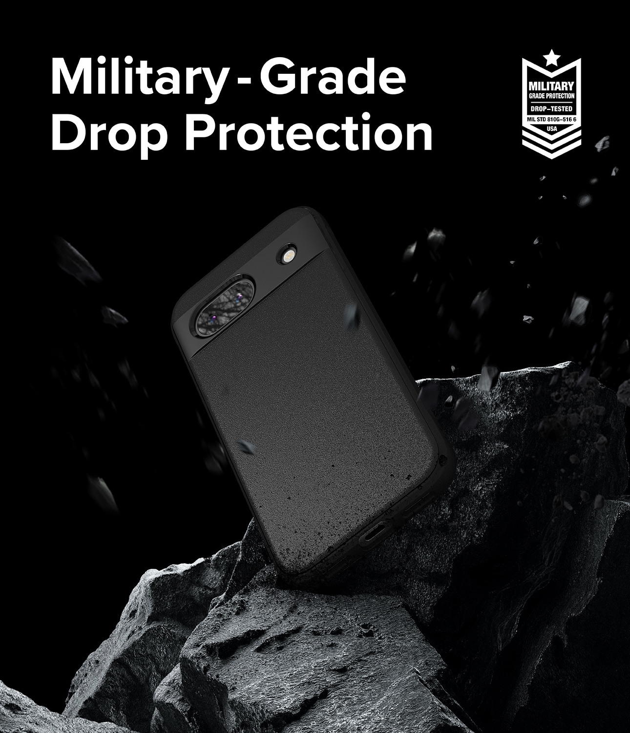 Det här är Onyx Case, det tuffa och snygga skalet Google Pixel 8a från Ringke. Det här är inte bara ett skal; det är en riddare i skinande rustning med sitt eleganta utseende och kanonbra stötskydd. Tänk dig förstärkta hörn som en extra sköld, upphöjda kanter som en vallgrav, och knappar så taktila att de känns som en hemlig handskakning.