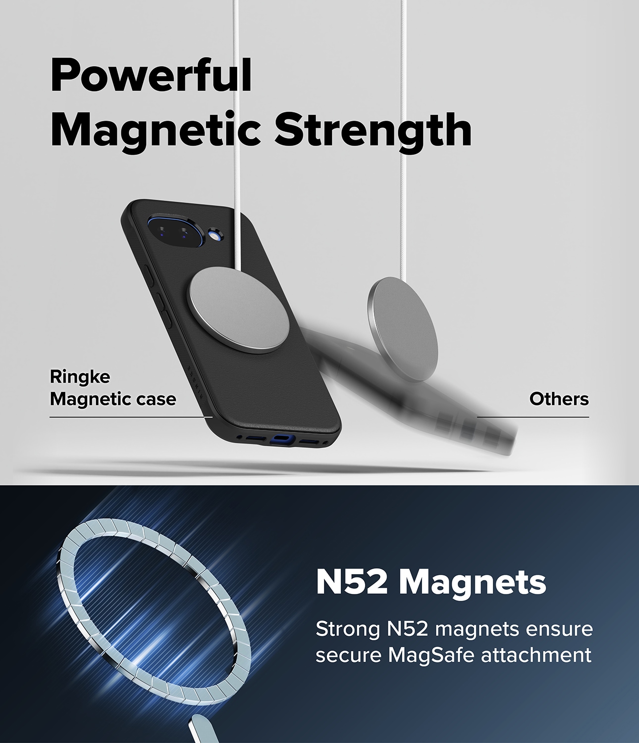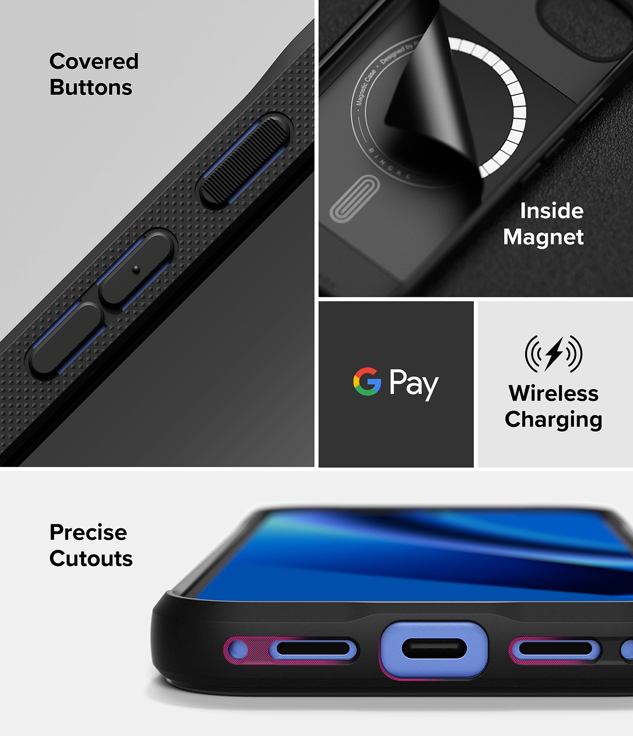 Det här är Onyx Magnetic Case, det tuffa och snygga MagSafe-skalet till Google Pixel 10a från Ringke. Det här är inte bara ett skal; det är en riddare i skinande rustning med sitt eleganta utseende och kanonbra stötskydd. Tänk dig förstärkta hörn som en extra sköld, upphöjda kanter som en vallgrav, och knappar så taktila att de känns som en hemlig handskakning. Tack vare den inbyggda, magnetiska ringen är skalet fullt MagSafekompatibelt med till exempel laddning eller korthållare.