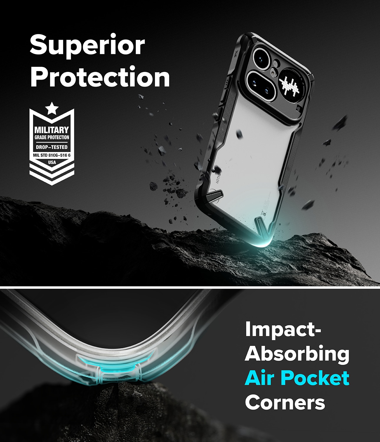 - Snyggt skal med MIL-STD 810G-516.6 Certified Military Grade Drop Protection