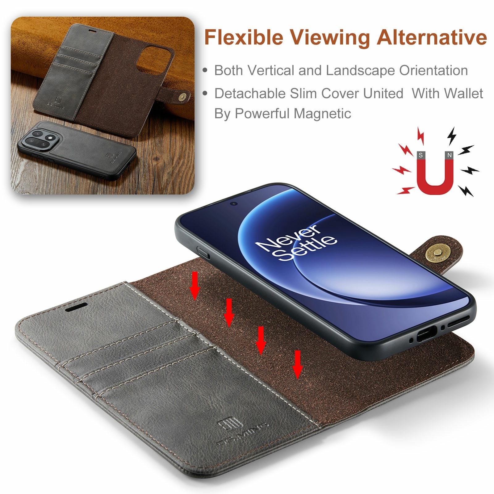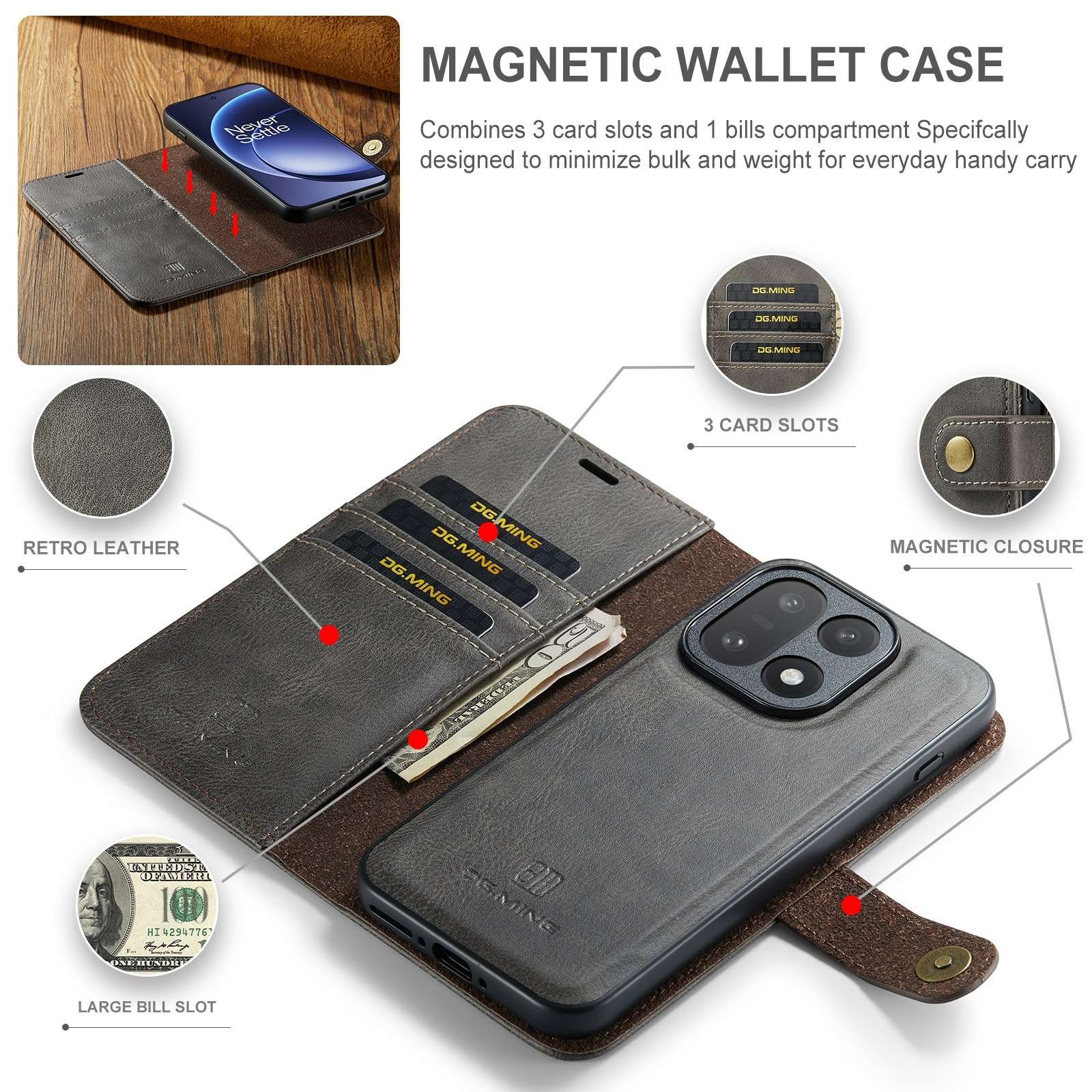 Kolla in vårt smarta fodral med avtagbart magnetskal till OnePlus 15 från DG.MING. Det här fodralet kombinerar klassisk stil med praktisk funktionalitet. Med det avtagbara skalet kan du enkelt ta bort telefonen från fodralet när du är hemma eller på jobbet, utan att behöva ha med hela fodralet också.