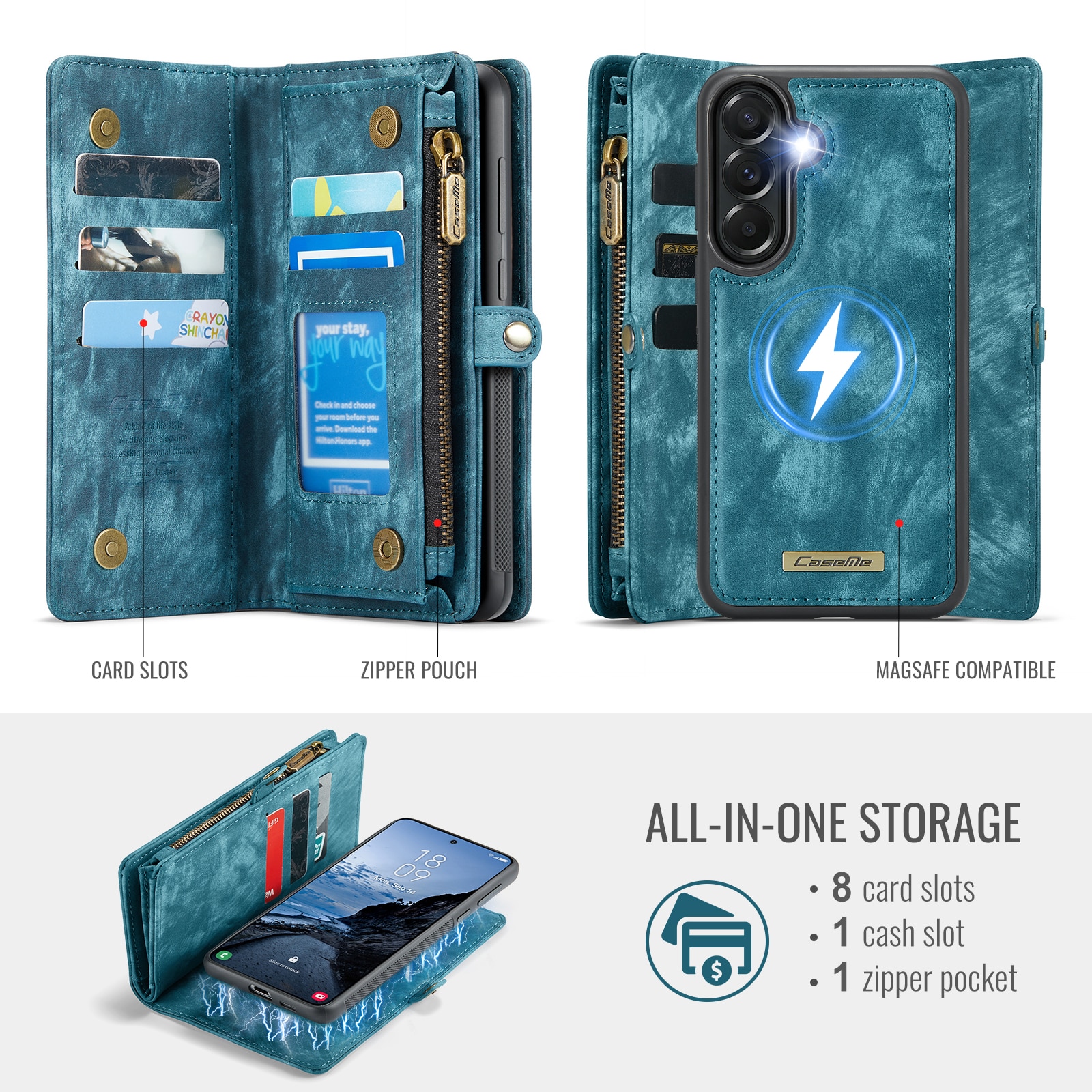 Kolla in detta mångsidiga mobilfodral från CaseMe till Samsung Galaxy A57. Det har en extra rymlig plånboksfunktion och ett praktiskt magnetskal!