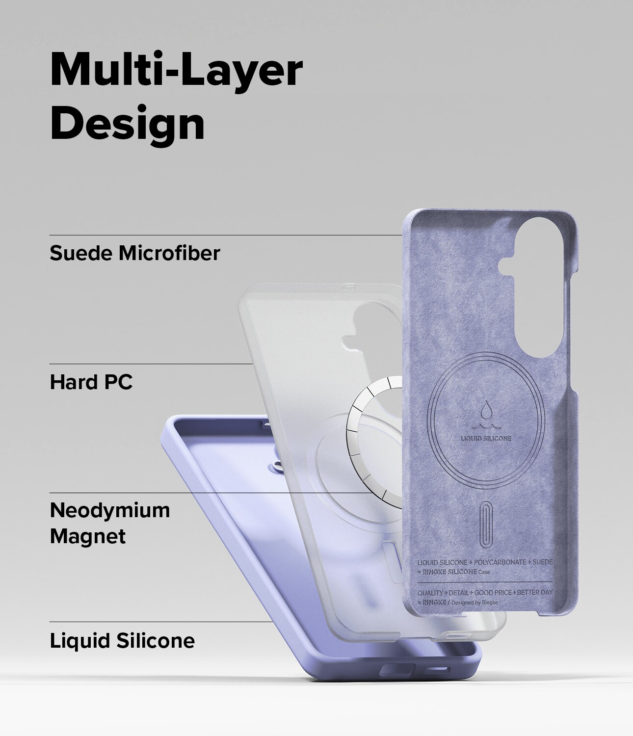 Träffa det superstylade silikonskalet från Ringke för din Samsung Galaxy S26 Plus - din telefon kommer att tacka dig! Med inbyggd MagSafe-funktionalitet blir det busenkelt att klicka fast alla möjliga MagSafe-tillbehör eller slänga telefonen på laddaren utan att behöva pilla bort skalet.