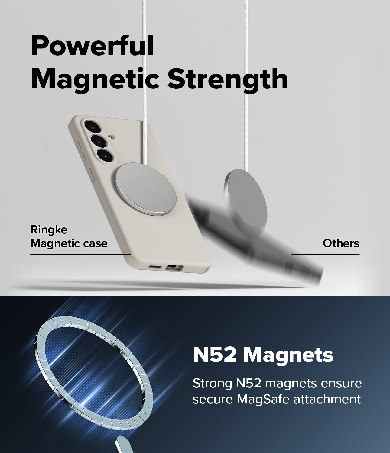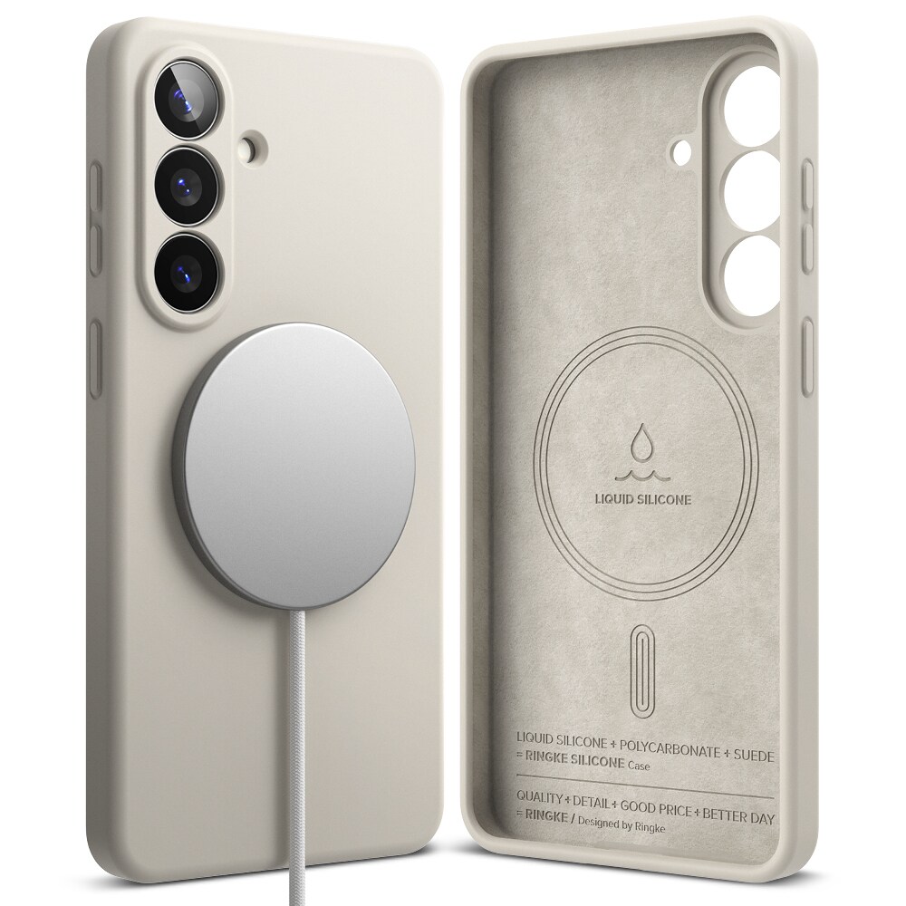 Träffa det superstylade silikonskalet från Ringke för din Samsung Galaxy S26 Plus - din telefon kommer att tacka dig! Med inbyggd MagSafe-funktionalitet blir det busenkelt att klicka fast alla möjliga MagSafe-tillbehör eller slänga telefonen på laddaren utan att behöva pilla bort skalet.