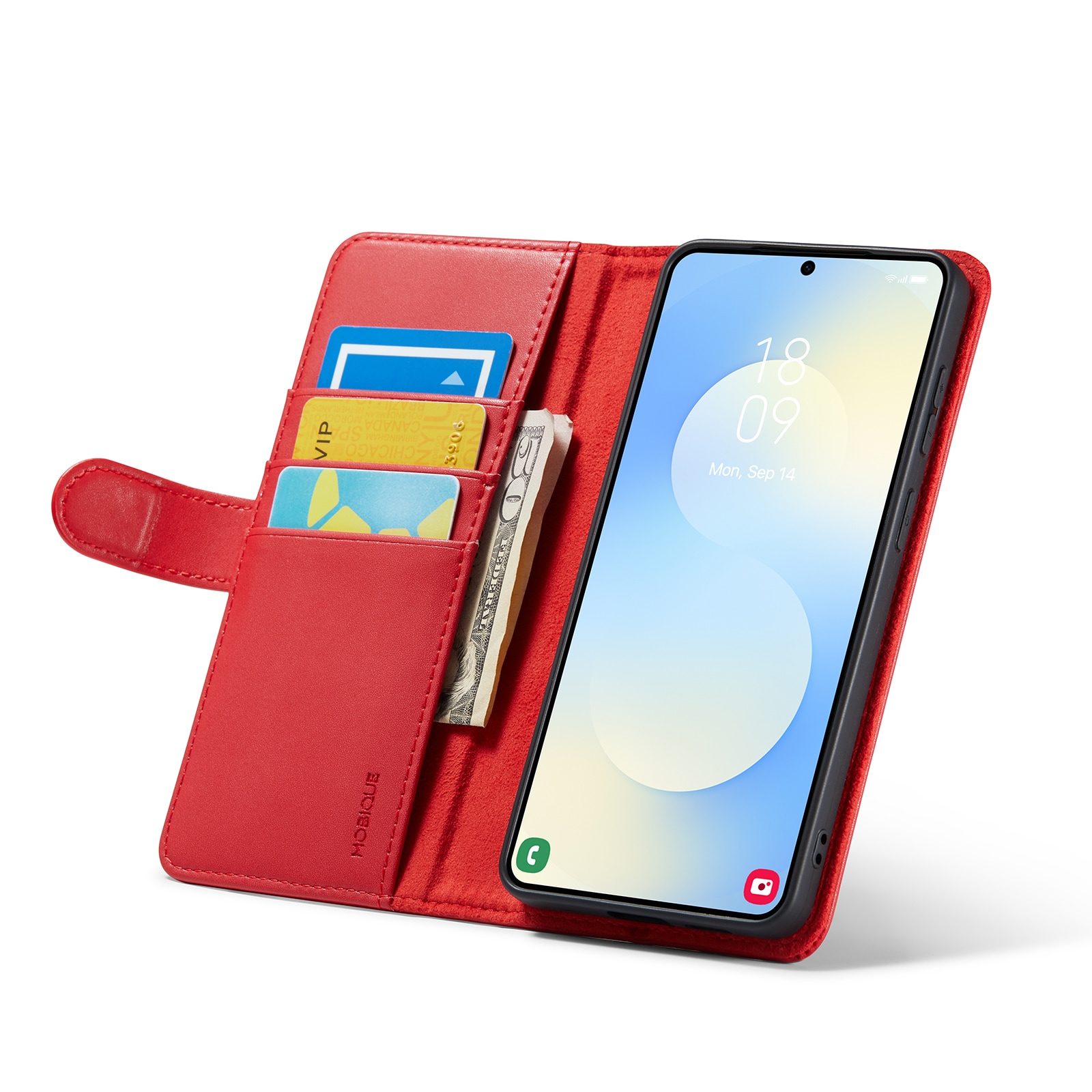 Sugen på ett schysst läderfodral till din Samsung Galaxy S26 Plus? Kolla in detta från Mobique! Det är inte bara snyggt, det är också superpraktiskt. Fodralet täcker hela din telefon, och inuti locket finns en grymt rymlig plånbok. Du får plats med ett flertal kort och lite kontanter, perfekt när du inte vill släpa runt på en plånbok.