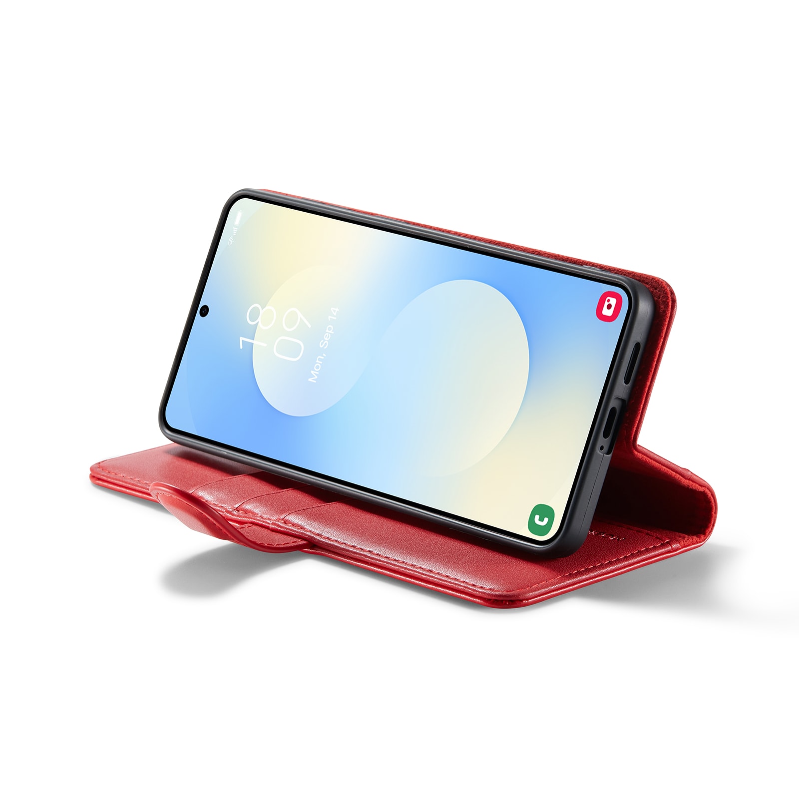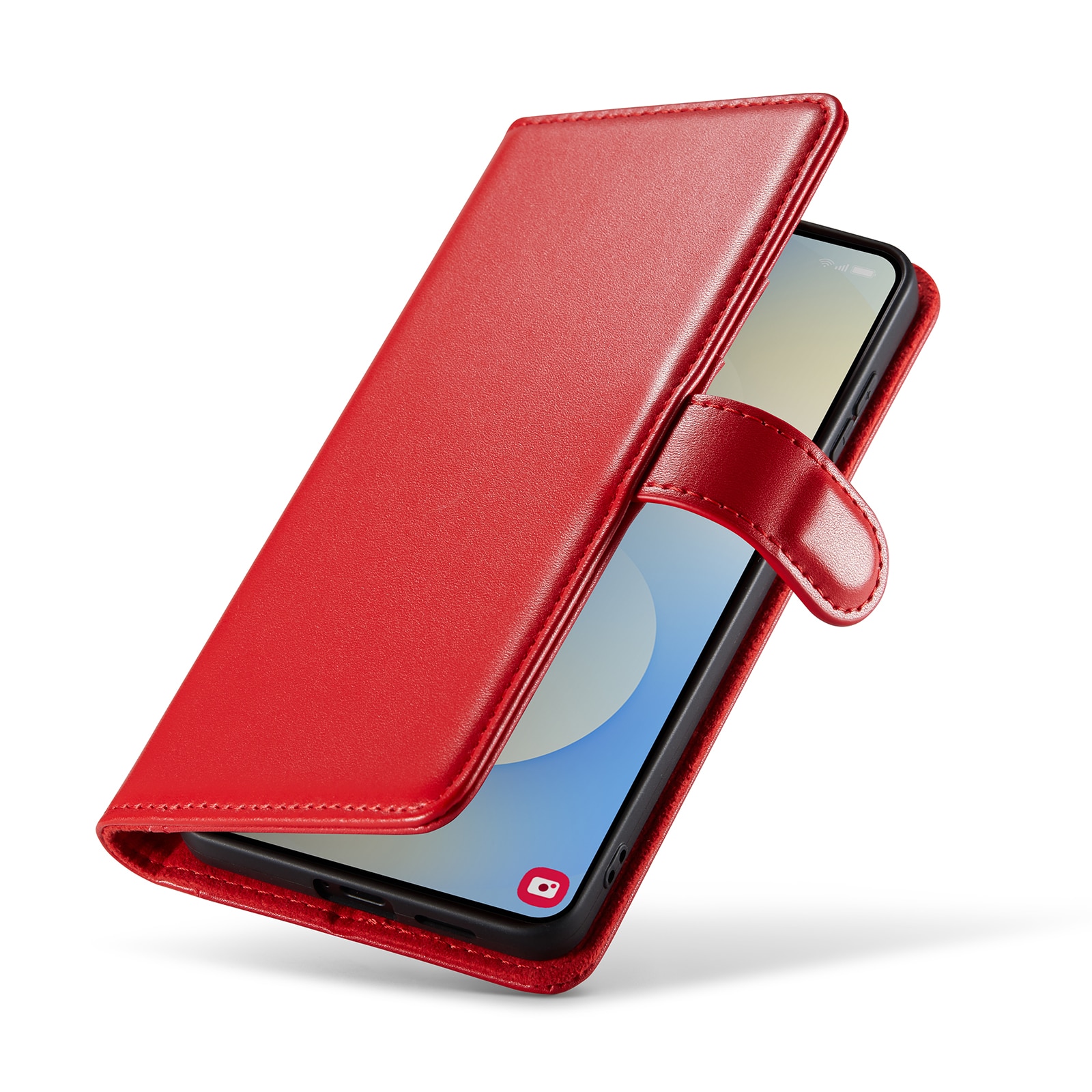 Din telefon sitter som en smäck i det inbyggda, stötdämpande TPU-skalet. Locket, som stängs med ett smart magnetspänne, skyddar både fram- och baksidan av telefonen. Inga fler skärmkrossar eller repor!
