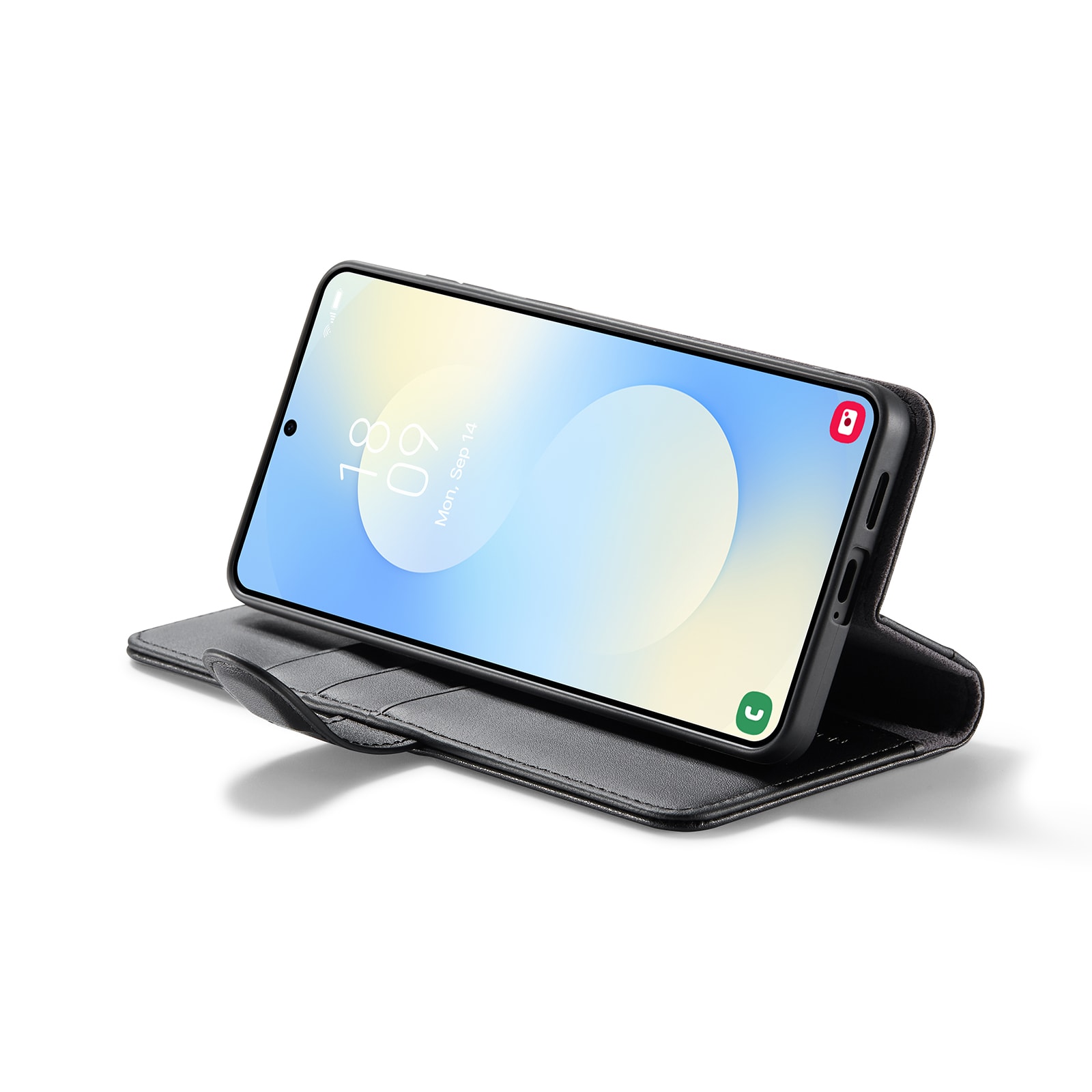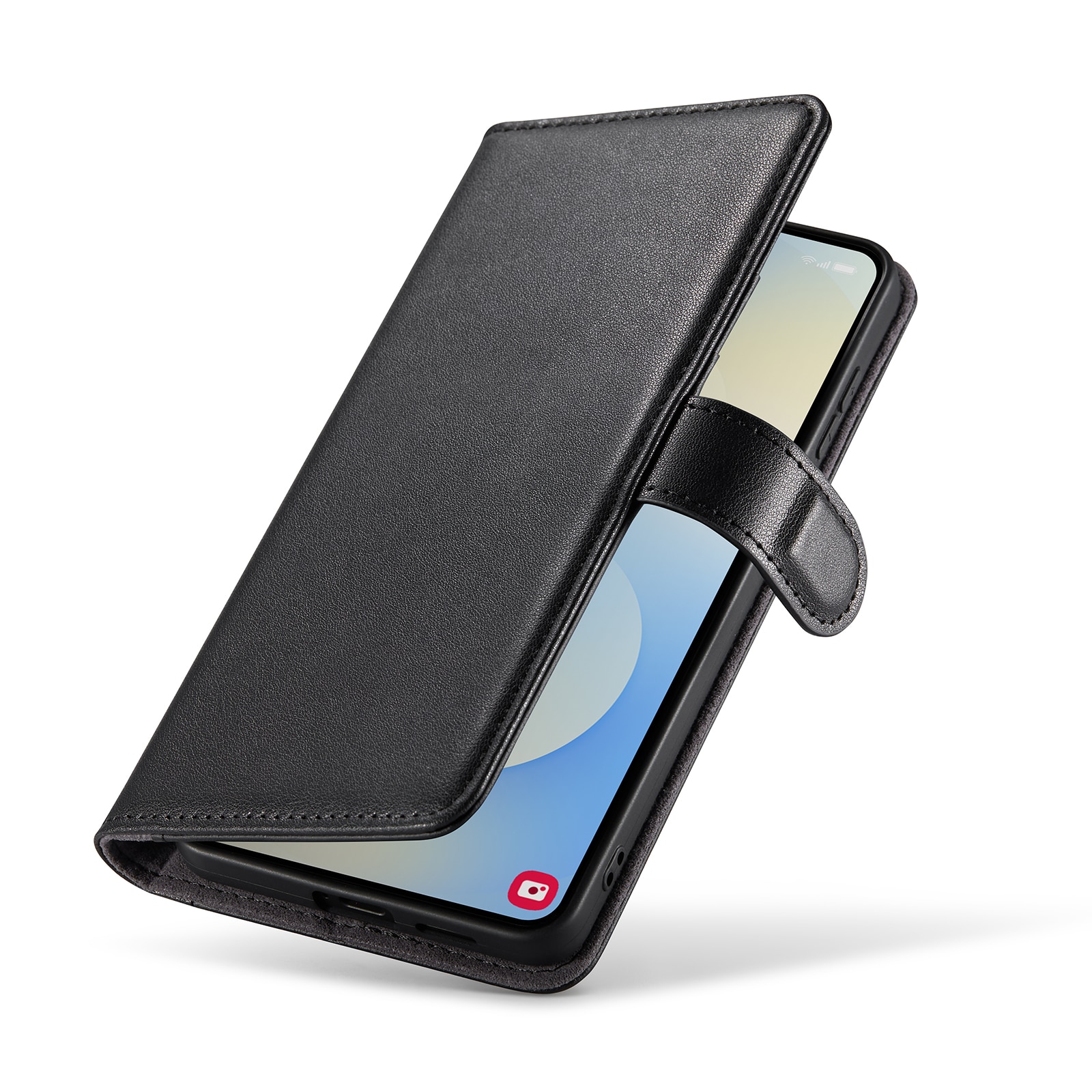 Din telefon sitter som en smäck i det inbyggda, stötdämpande TPU-skalet. Locket, som stängs med ett smart magnetspänne, skyddar både fram- och baksidan av telefonen. Inga fler skärmkrossar eller repor!