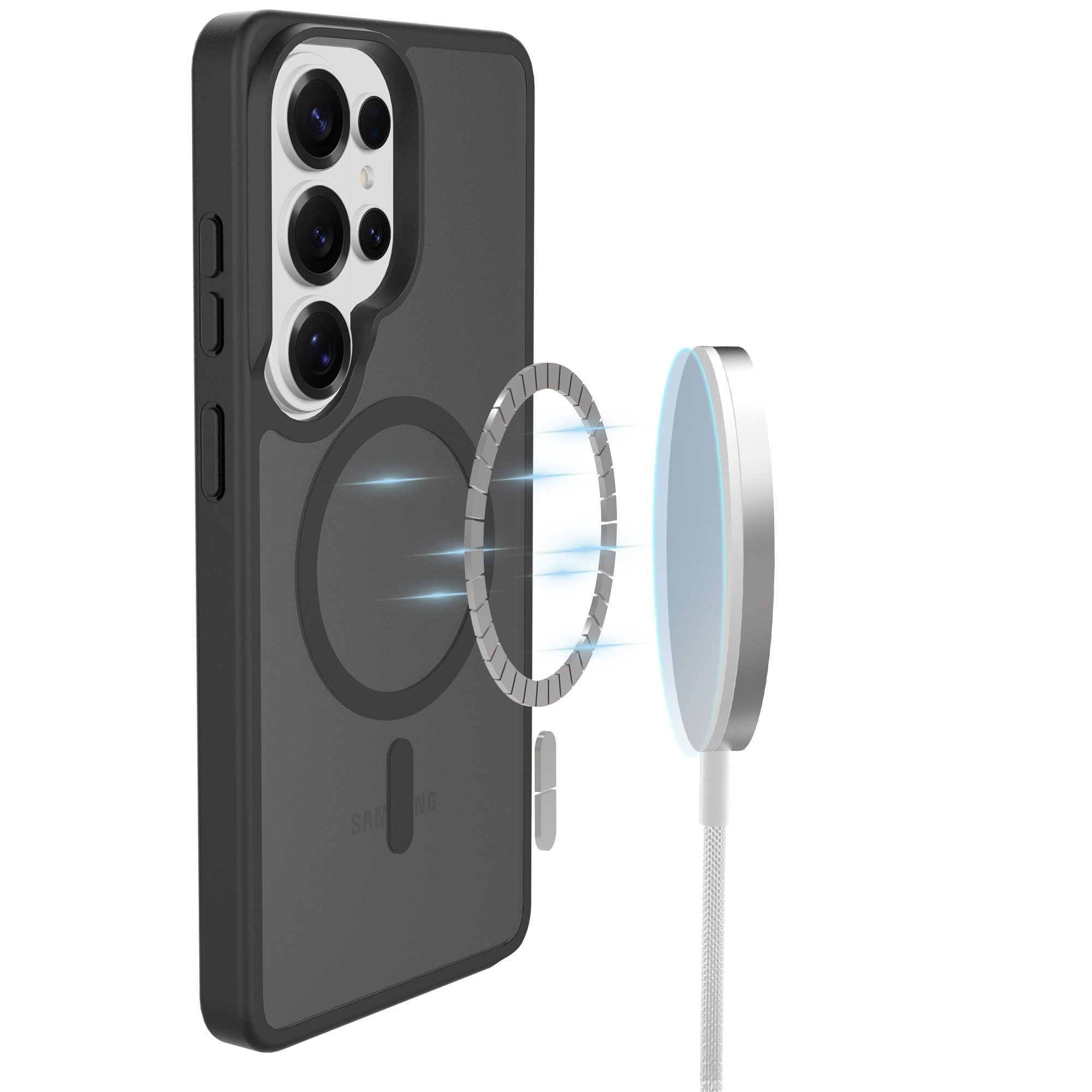 Ge din telefon en stilboost med detta hybrida skal för Samsung Galaxy S26 Ultra från Mobique! Med sin eleganta frostad finish och smarta magnetiska ring på baksidan är det här skalet inte bara ett skydd, det är en uppgradering. Den magnetiska ringen gör det busenkelt att använda MagSafe-tillbehör som laddare och korthållare - snacka om praktiskt!