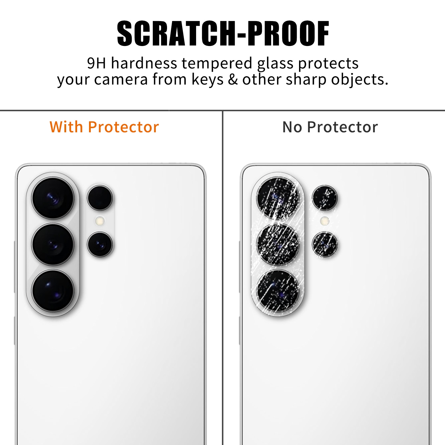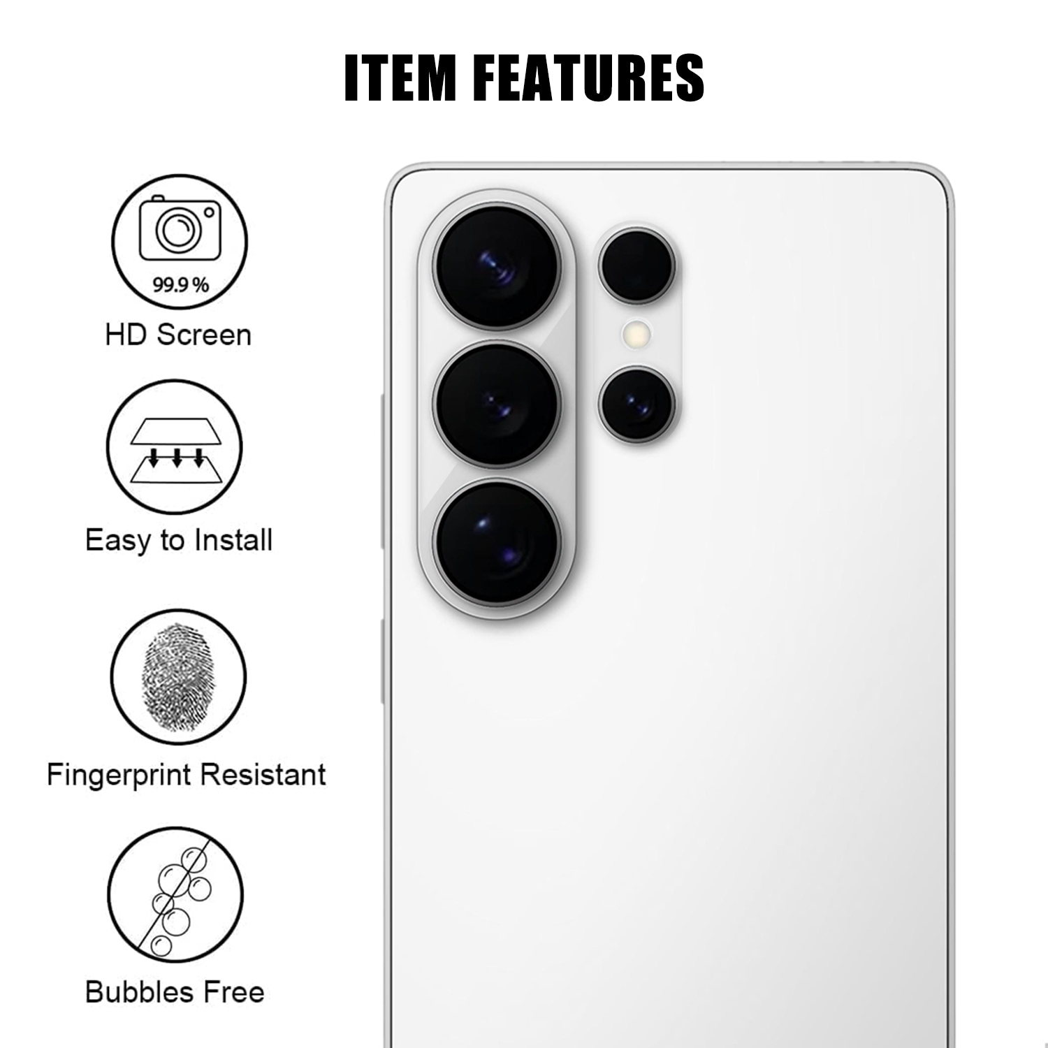 Kameralinsskydd i härdat glas till Samsung Galaxy S26 Ultra som hjälper din kamera att hålla sig snygg och redo för action. Skyddar effektivt mot repor, stötar och vardagligt slitage. Det heltäckande skyddet omsluter både linser och kamerahus, och när det väl sitter på plats är det knappt synligt.