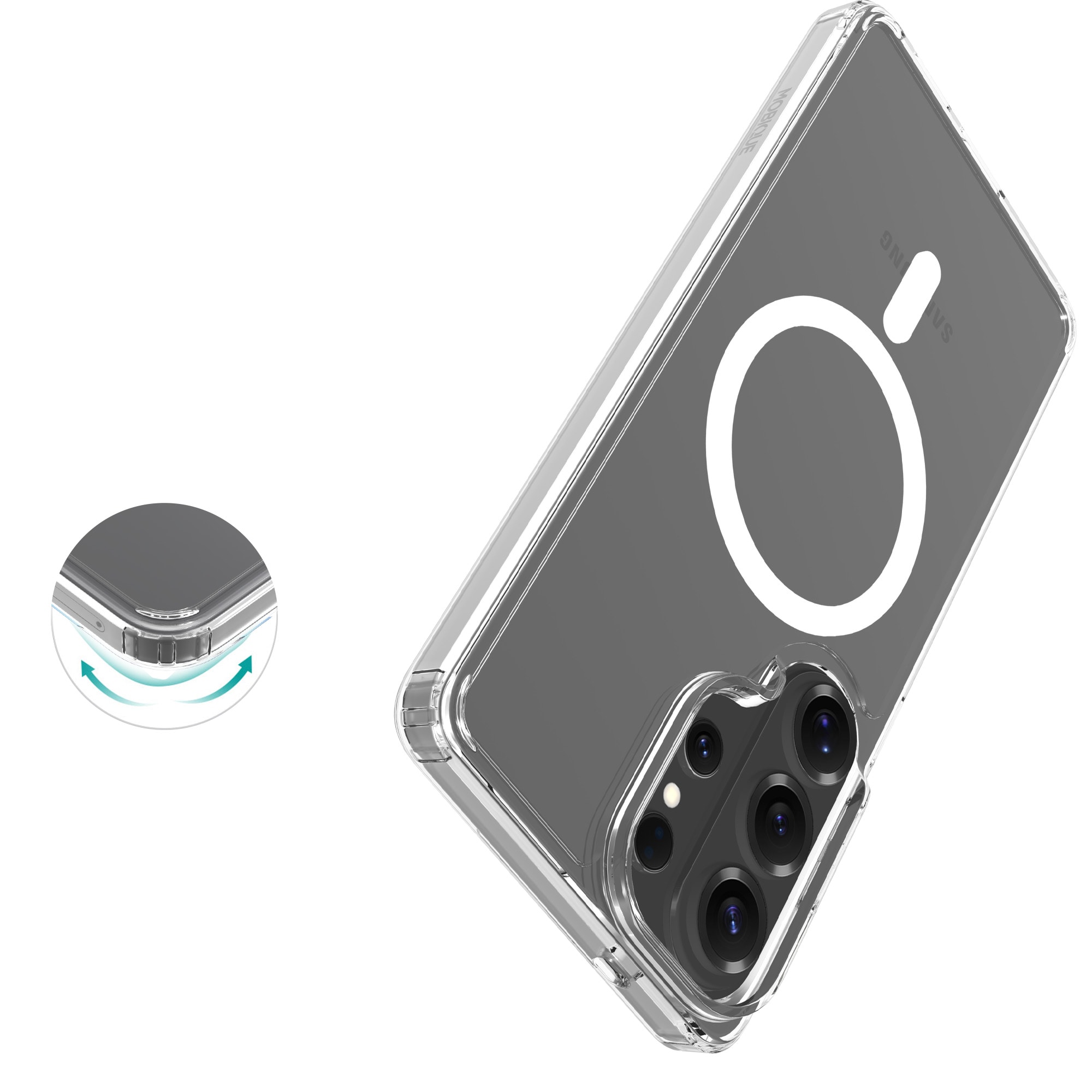 Se här, vilket smart och chict hybridskal till Samsung Galaxy S26 Ultra med en magnetisk ring för den ultimata kombinationen av stil och funktion! Skalet är designat i två delar; en flexibel TPU-kärna omfamnad av ett robust hårdplasthölje som står pall mot både stötar och fall. Den magnetiska ringen på baksidan är redo för dina MagSafe-tillbehör, från laddare till korthållare.