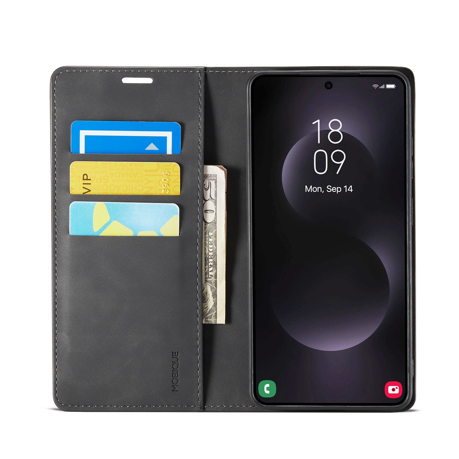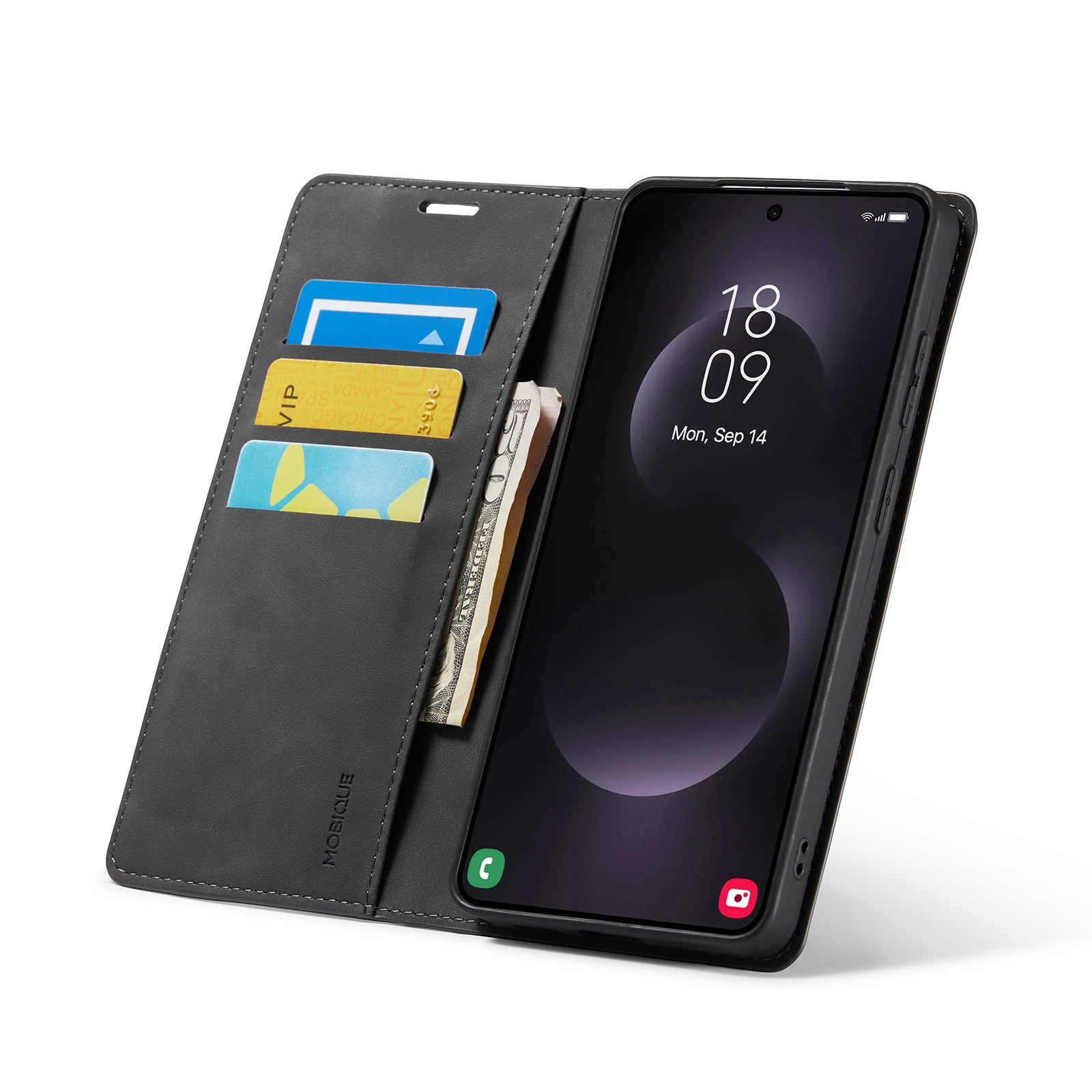 Gör din Samsung Galaxy S26 Ultra både praktisk och elegant med detta snygga och slimmade mobilfodral. Med sitt silkeslena omslag i hållbart konstläder och ett stötdämpande TPU-skal på insidan, är din telefon väl skyddad från både repor och tapp. Locket skyddar skärmen när fodralet är stängt, och har plats för två kort samt ett extra fack för kvitton och sedlar, så att du håller enkelt ordning på dina viktigaste saker.